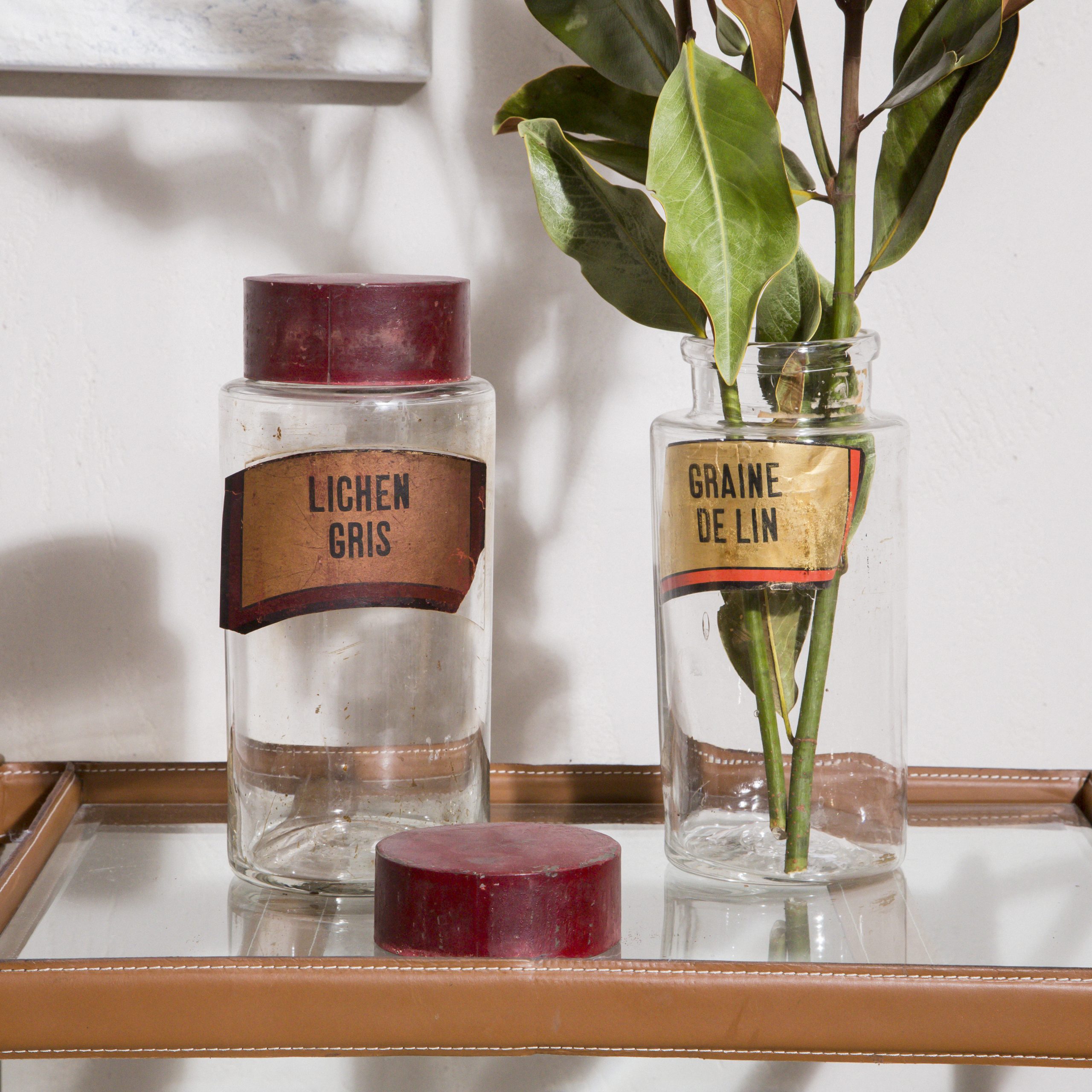 Botella decorativa antigua de boticario francés L. Auténticos frascos de vidrio de farmacia, de origen francés, son piezas únicas que nos trasladan a las antiguas boticas y a las recetas de los productos de la época.