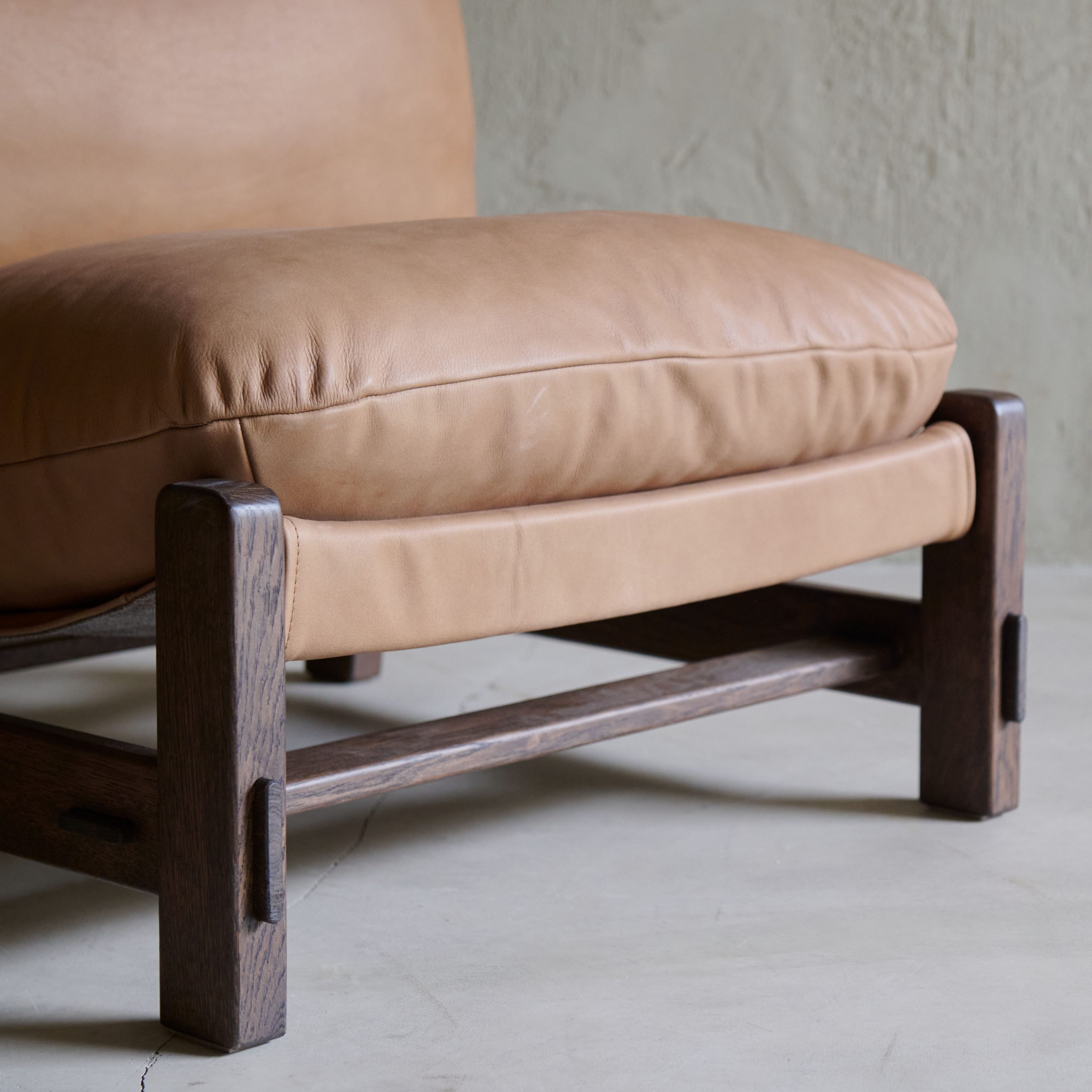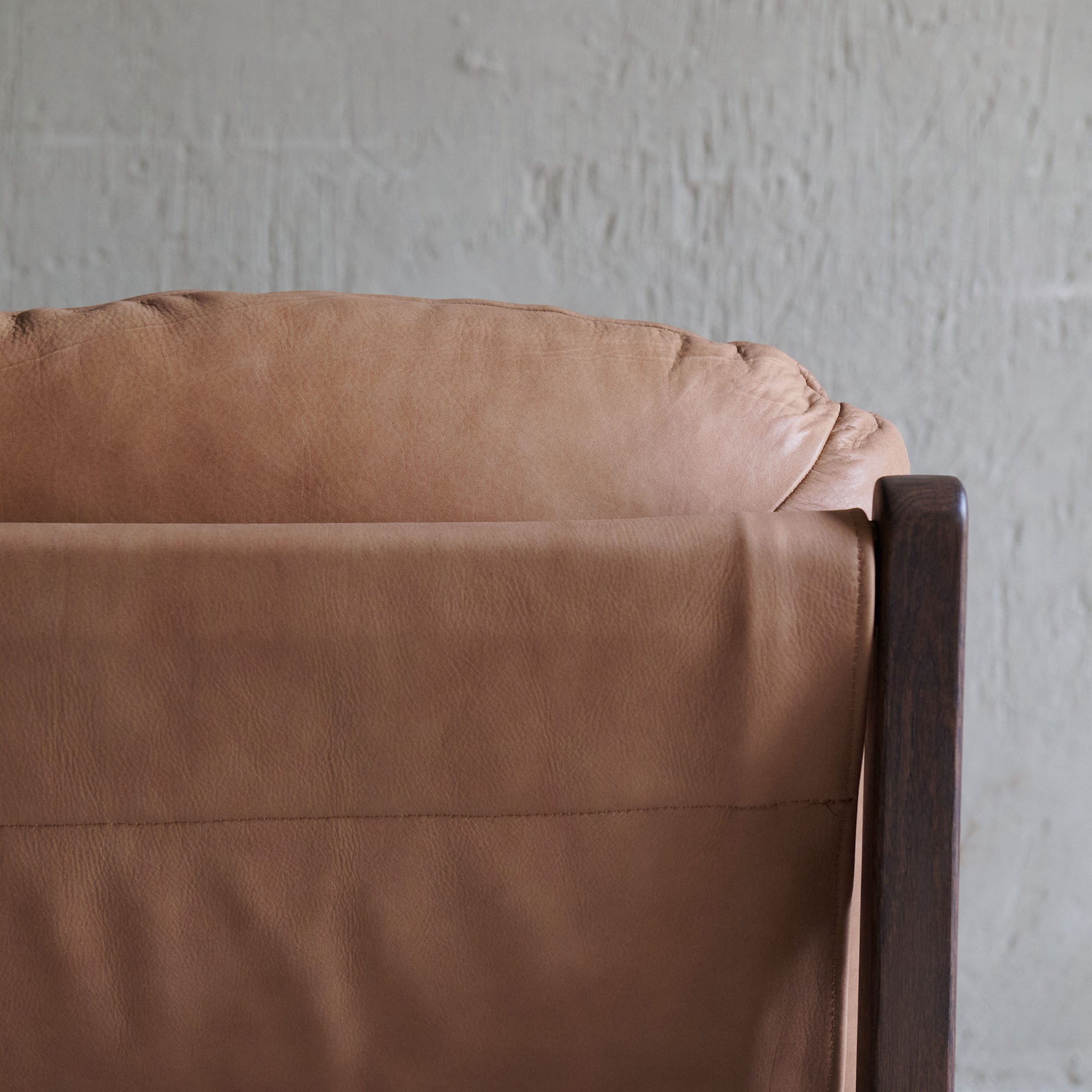 Butaca de madera y piel. De inspiración Mid Century europea, es una butaca de especial diseño con base de madera maciza y asiento y respaldo de piel en color marrón. Una pieza que combina la calidez y la elegancia de la madera con la comodidad y la sofisticación de la piel. Con un diseño clásico y atemporal, ofrece un asiento acogedor y duradero que se adapta a una variedad de estilos decorativos.