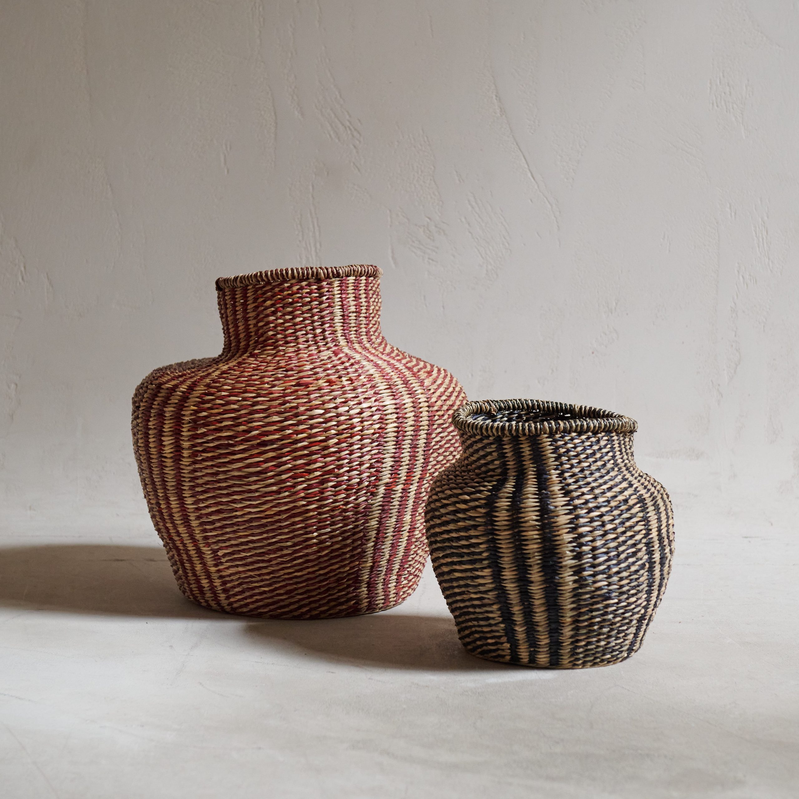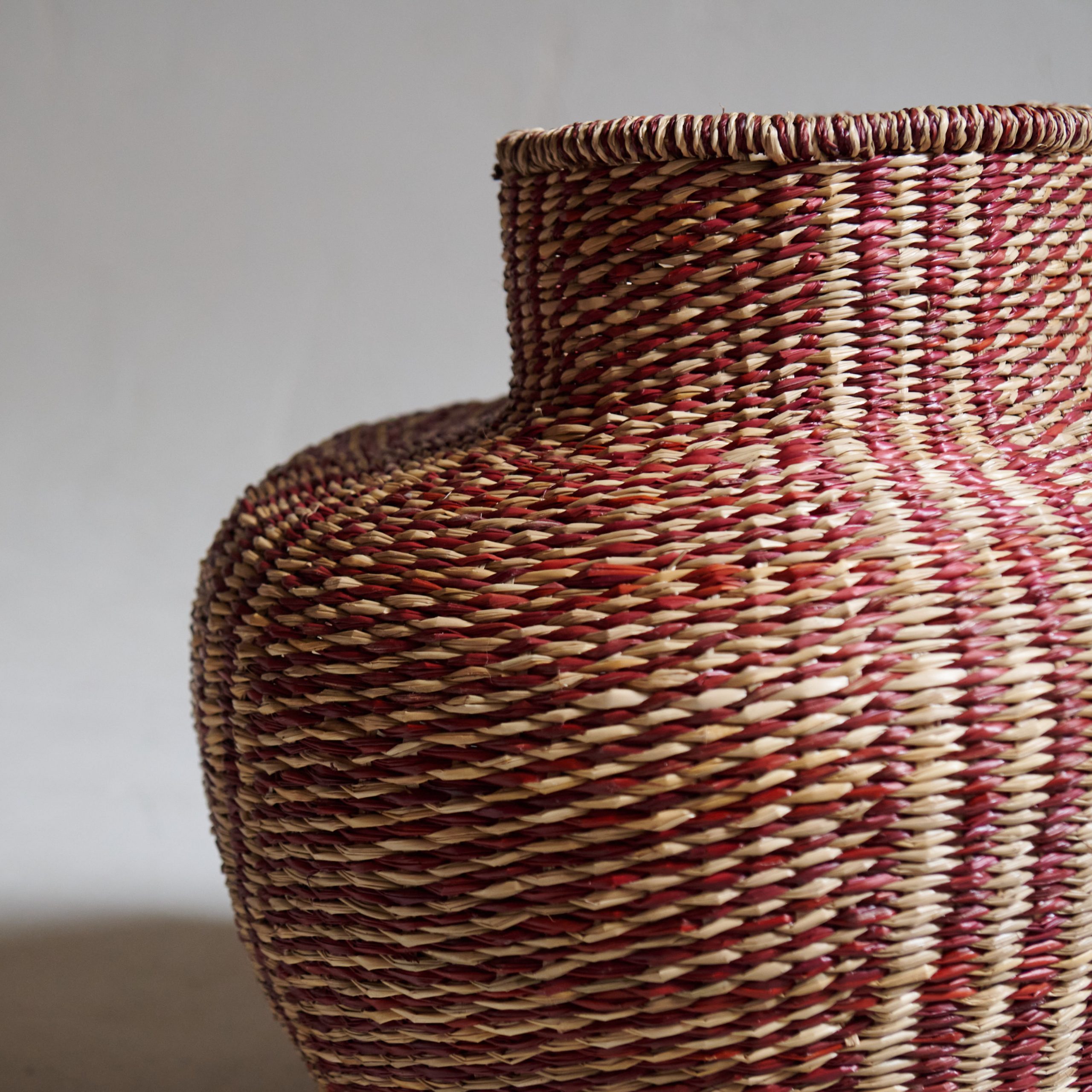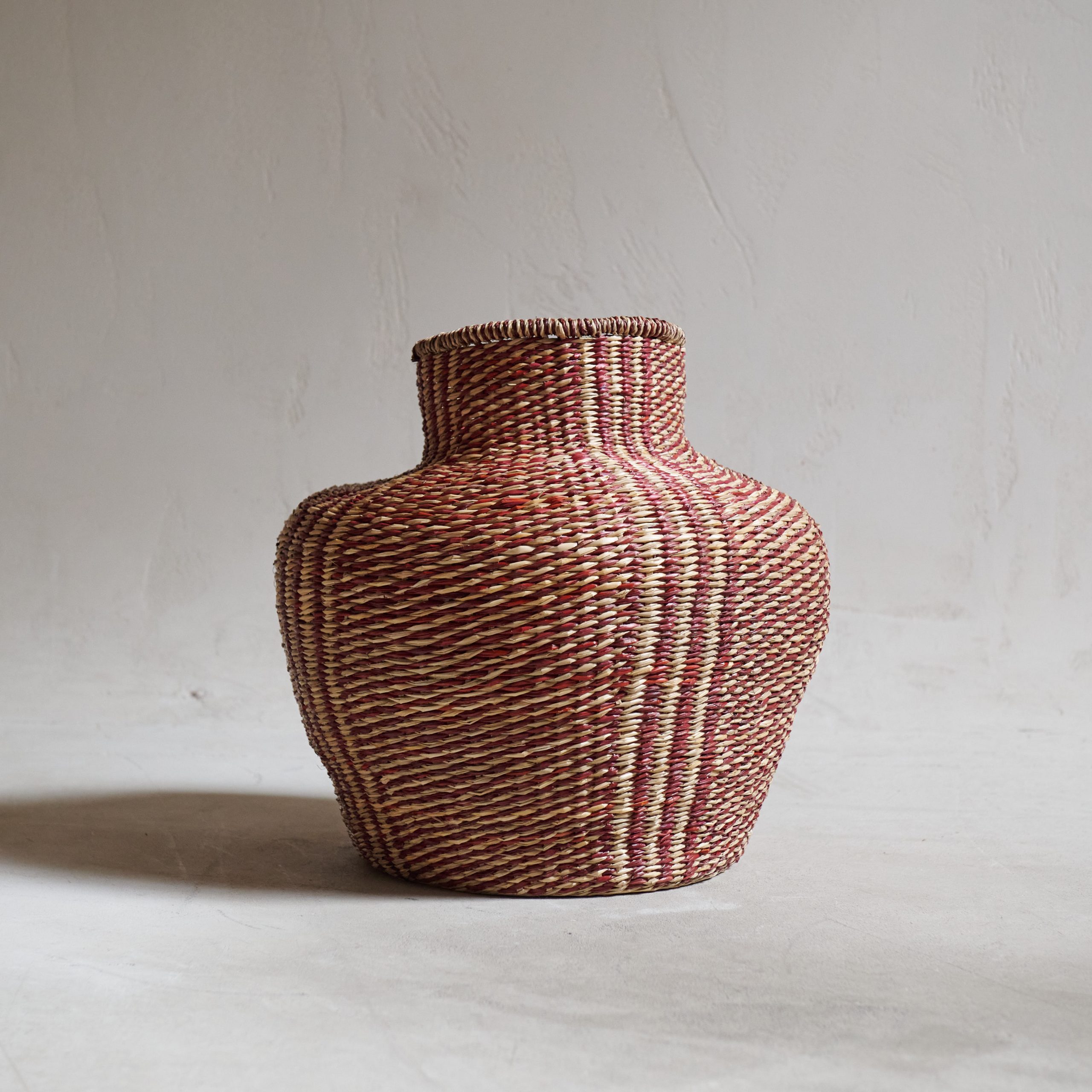 Cesta de hierbas marinas naturaleza y rojo. Original cesta elaborada artesanalmente con fibra natural de yute y algas marinas. Sus tonos naturales y rojizos la la convierten en la pieza decorativa perfecta para cualquier espacio. Sus formas irregulares animan la decoración y aportan un toque de diversión.