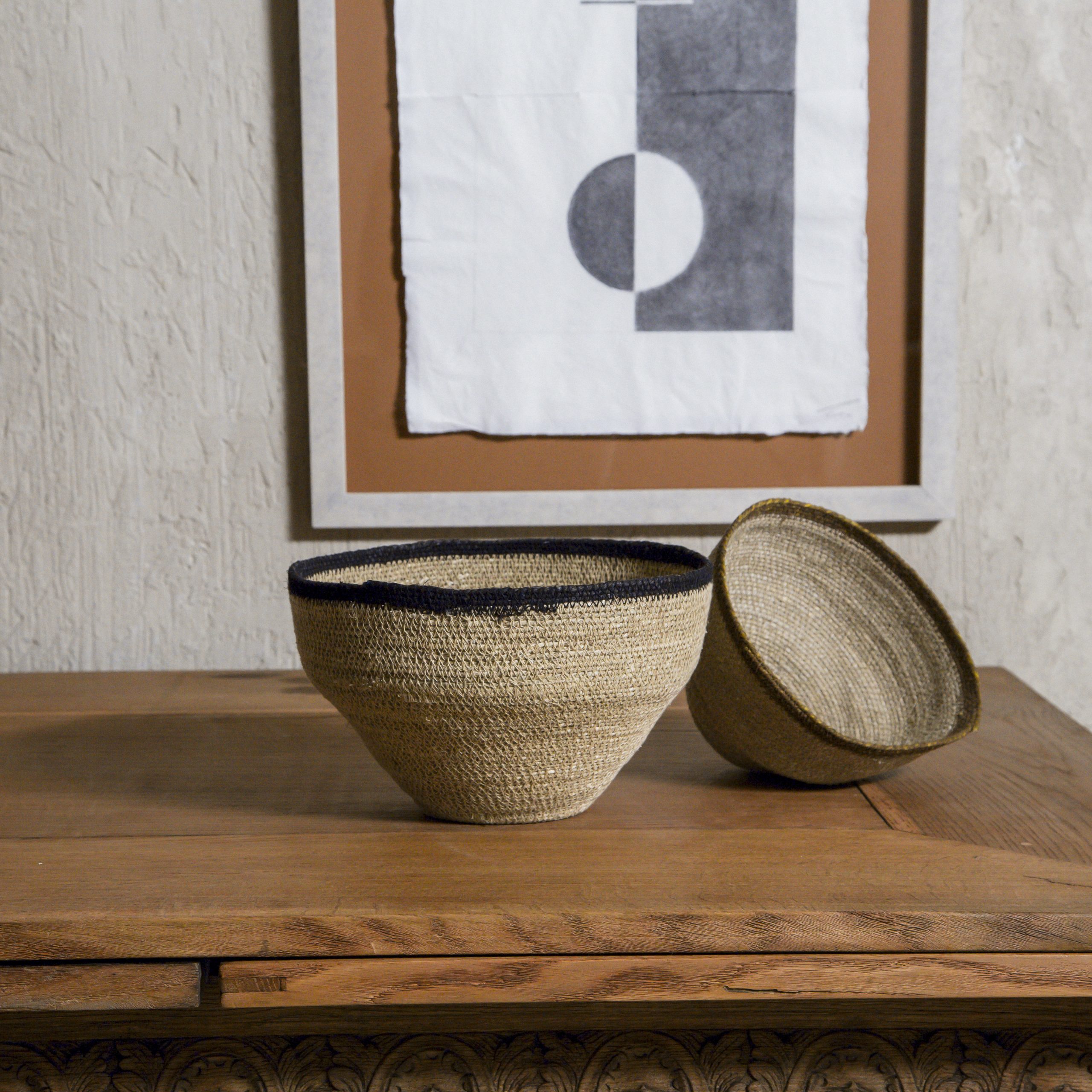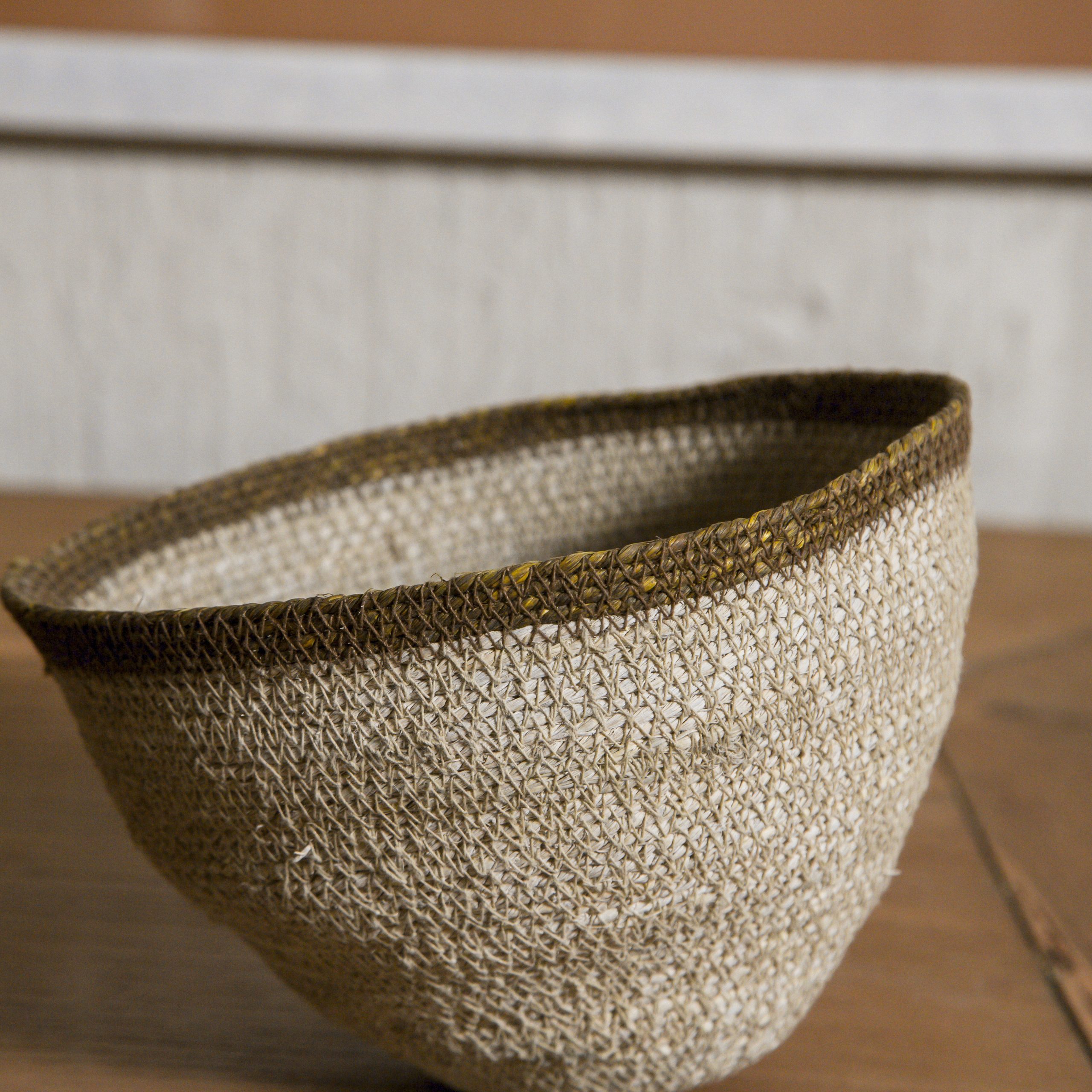 Cesto artesanal de color beige y marrón