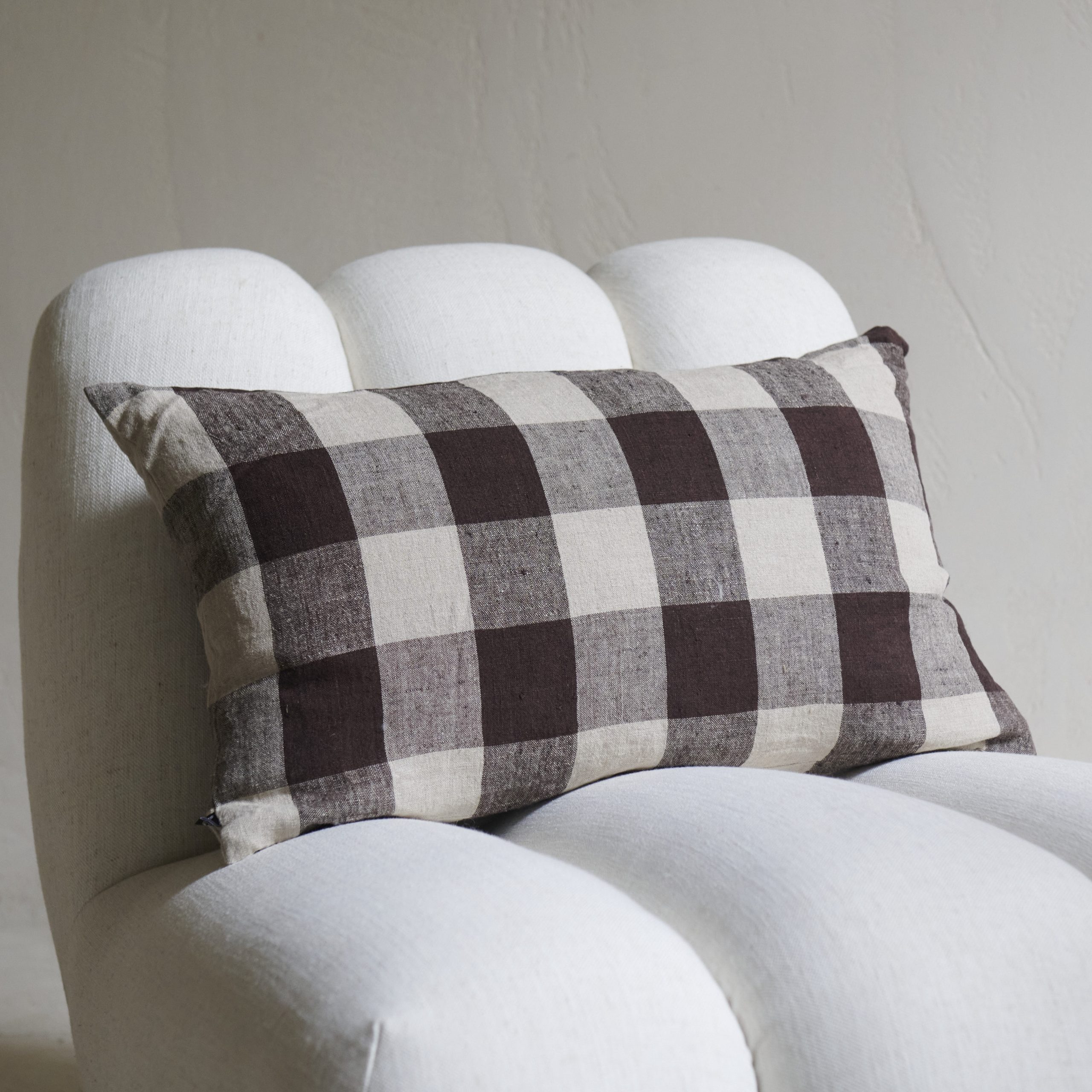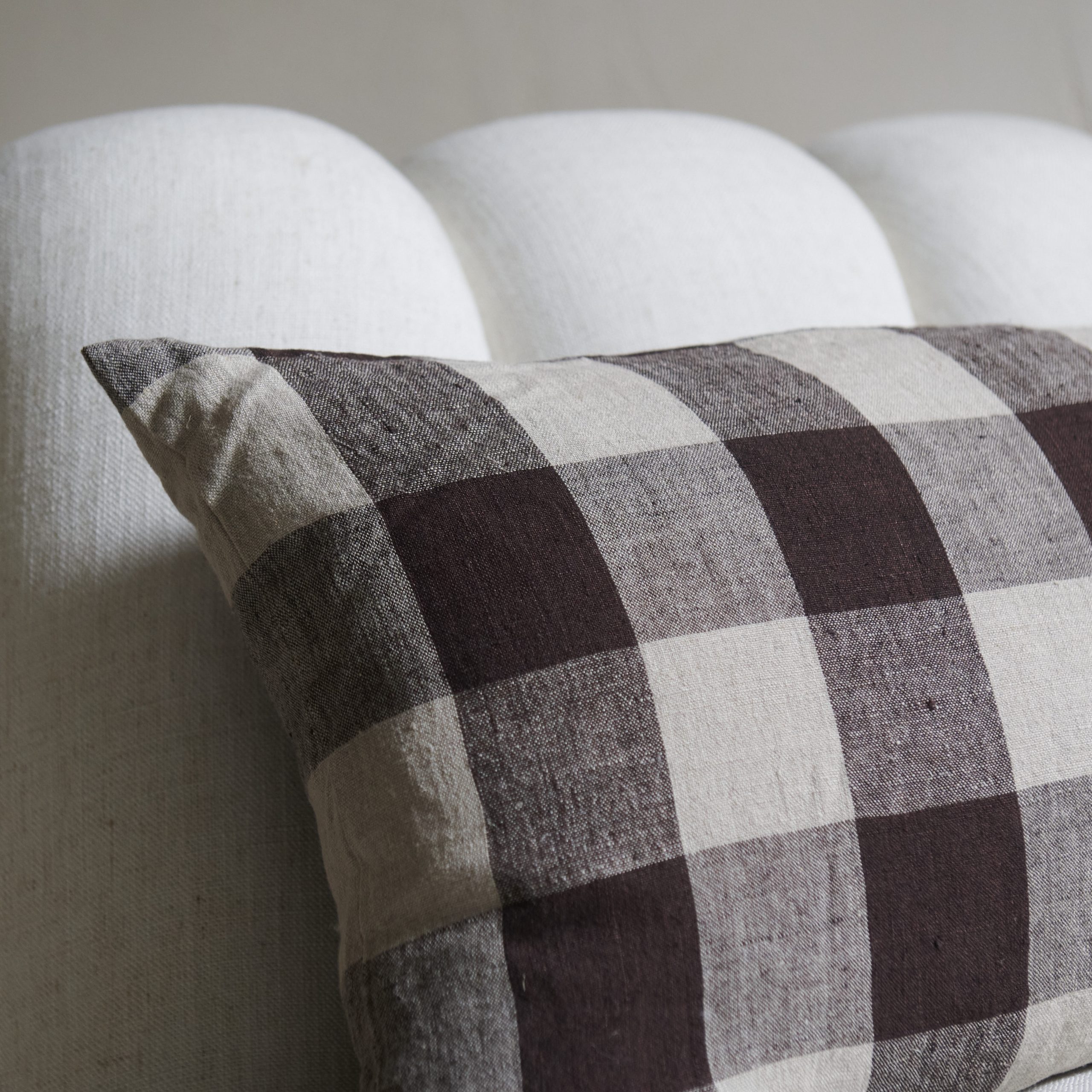 Cojín de cuadros marrones y grises. Con un diseño de cuadros grandes al estilo Vichy, este cojín presenta bonitos tonos marrones que se van degradando hasta llegar casi al gri. Perfectos para decorar y alegrar cualquier espacio.
