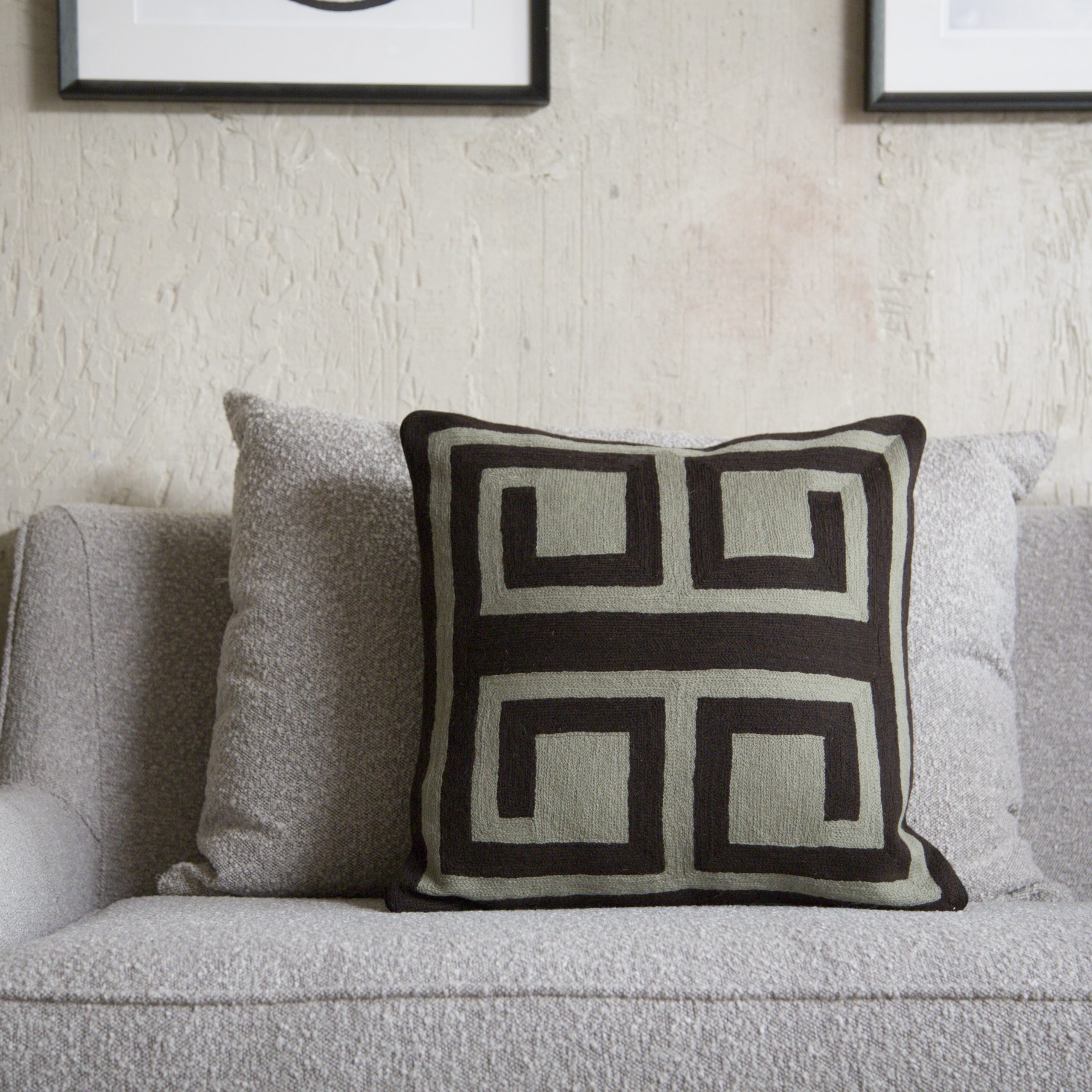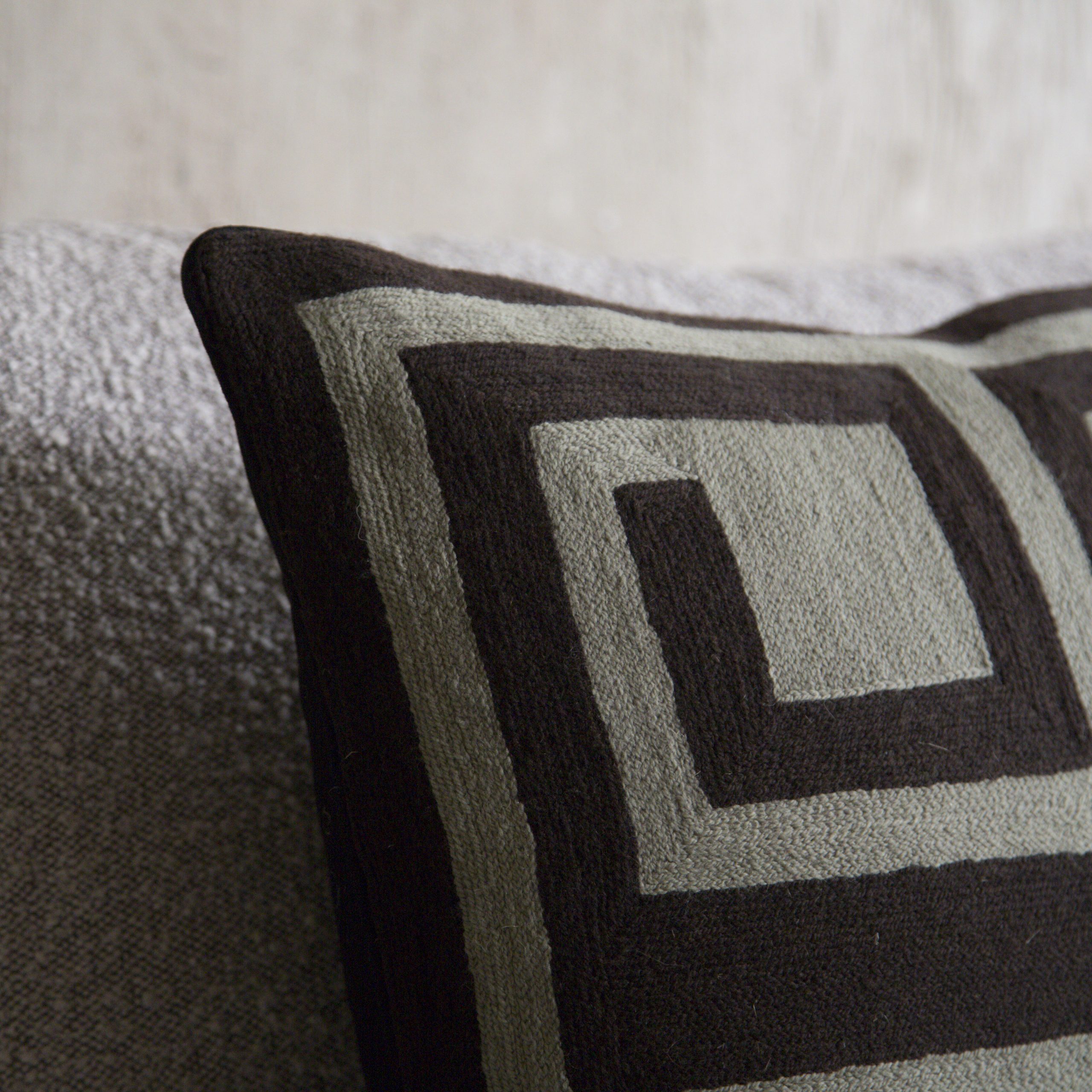 Cojín de diseño negro y verde. Medidas: 50×50 cm.