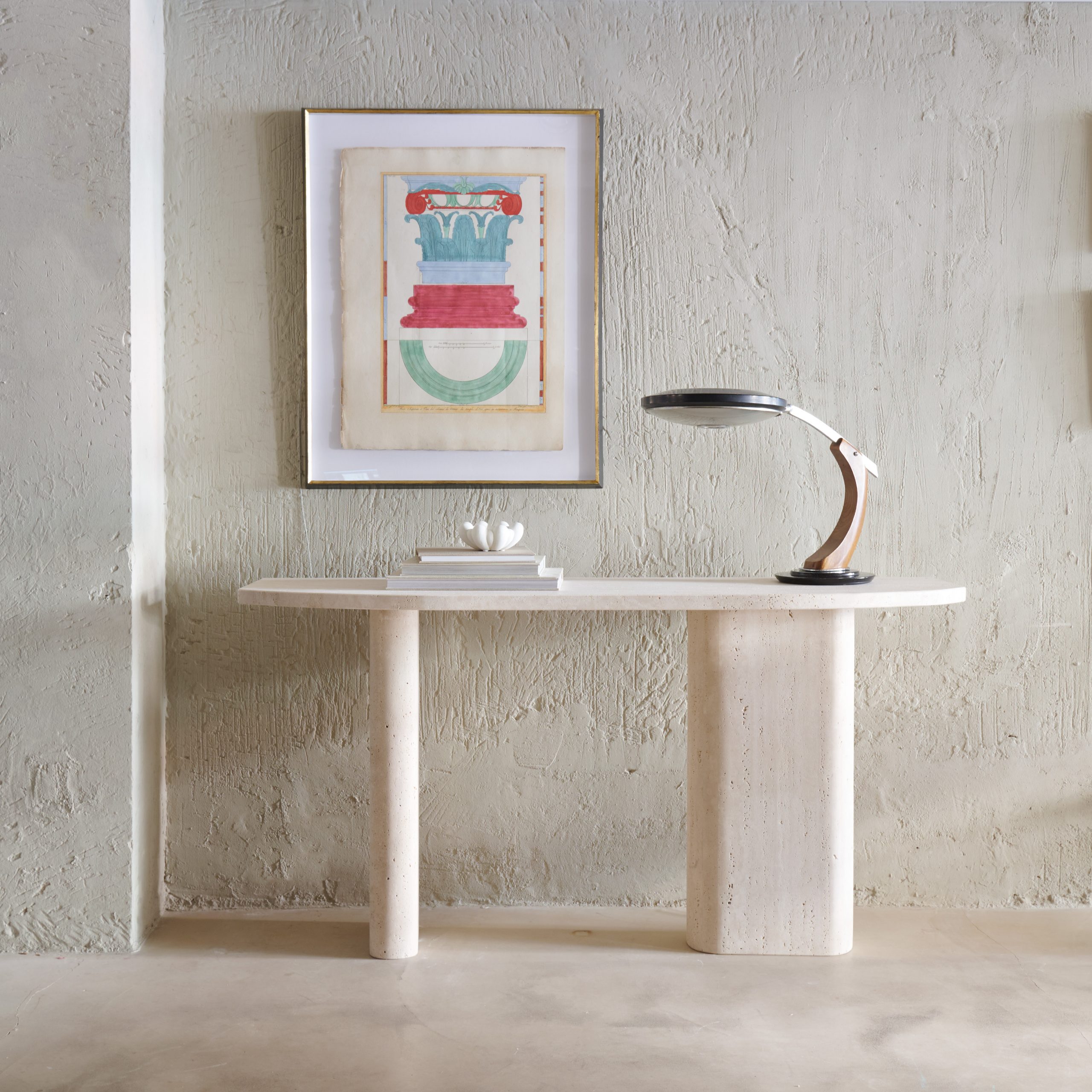 La Consola «Castellón» de mármol travertino es una pieza única. Presenta un diseño elegante y contemporáneo. Su sobre de cantos rectos añade un toque de minimalismo, mientras que las bases con acabado baquetón le dan un aspecto sofisticado. El travertino, con su belleza natural, aporta calidez y textura, convirtiendo esta pieza en un punto focal que no pasa desapercibida. Al ser un diseño propio, se puede encargar a medida. Consultar vía email a shoponline@tristandomecq.com, llamando al 915763742 o a través de whatsapp.