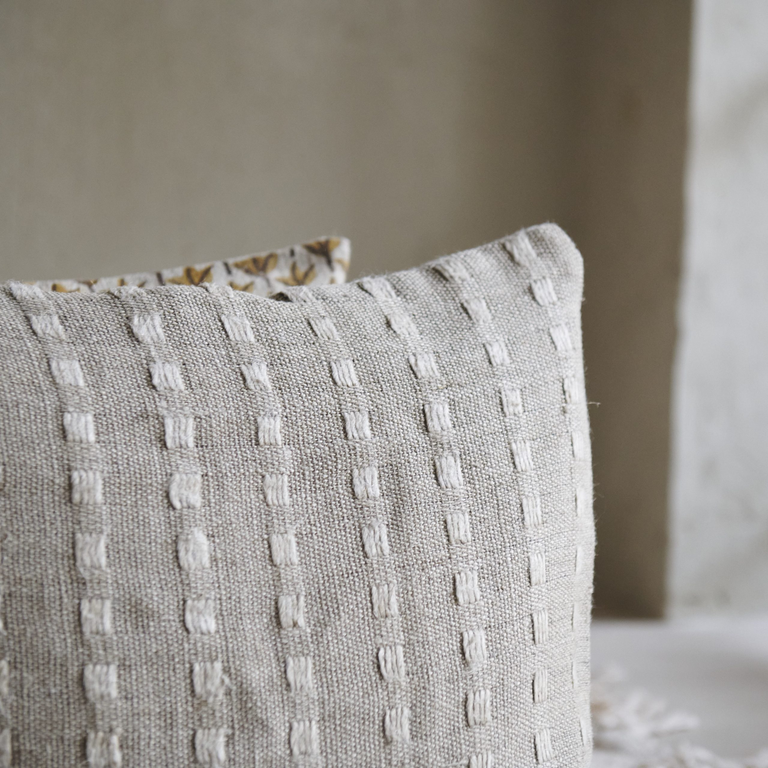 Funda de cojín beige lino. Una pieza sencilla pero elegante, ideal para añadir un toque de sofisticación y comodidad a cualquier espacio. El lino, con su textura natural y ligeramente rugosa, ofrece una sensación de frescura y ligereza. mientras que el color beige presenta una base cálida y versátil, que se adapta fácilmente a diferentes estilos decorativos.