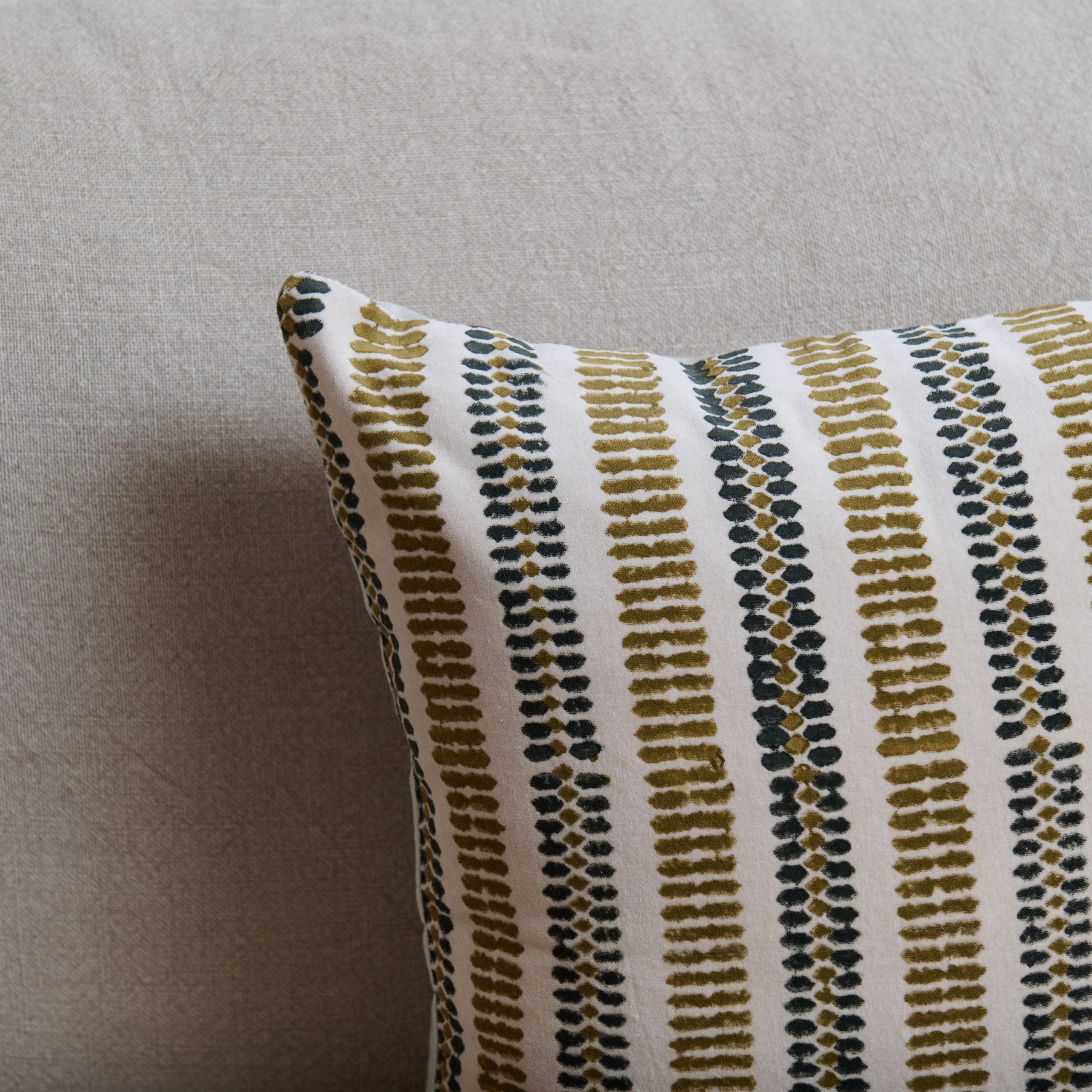 Funda de cojín blanco roto y pistacho