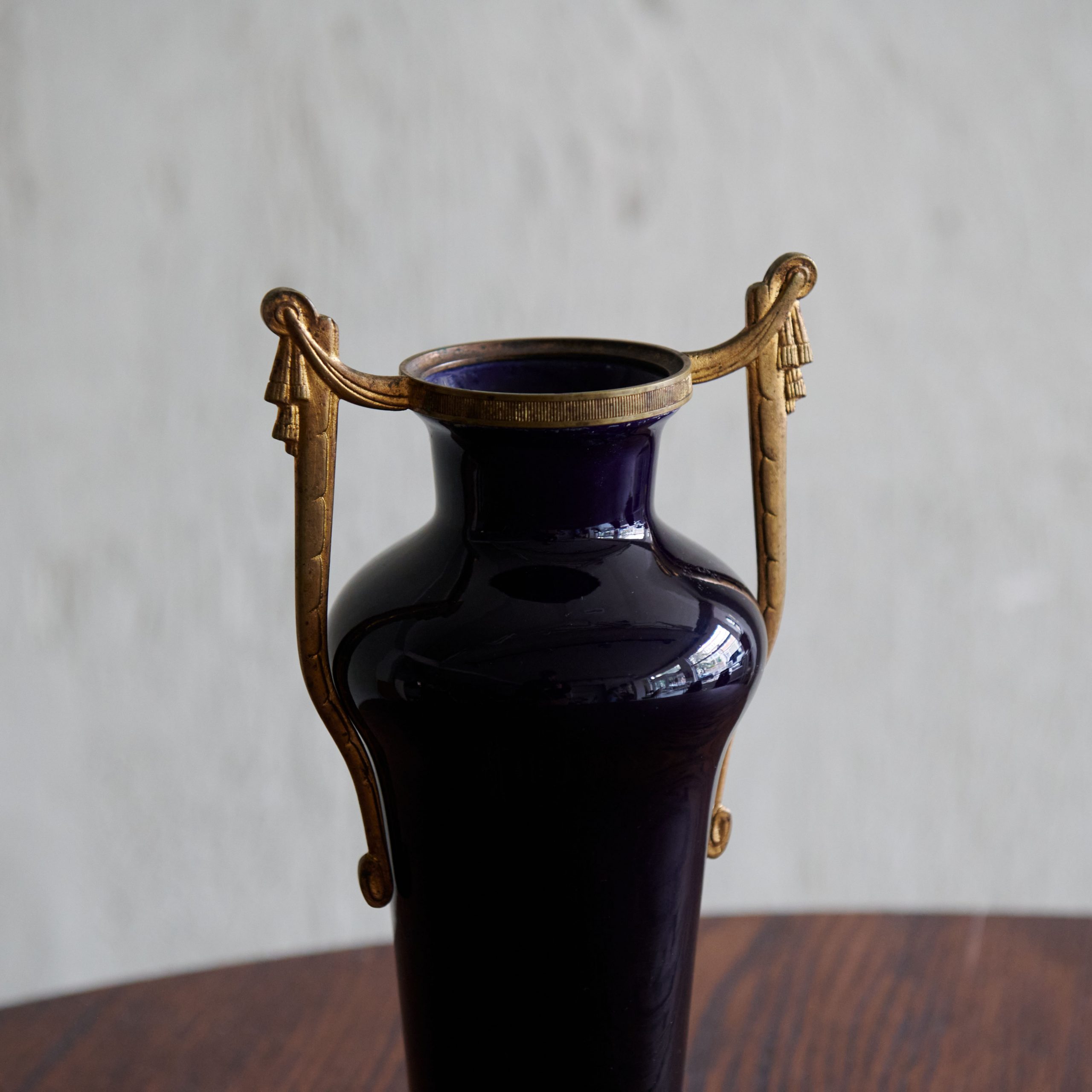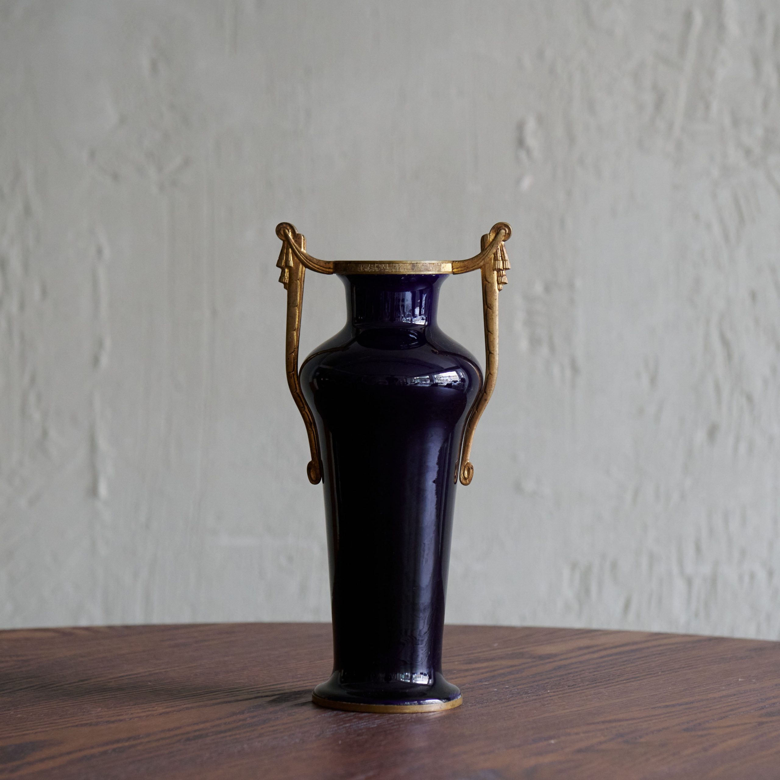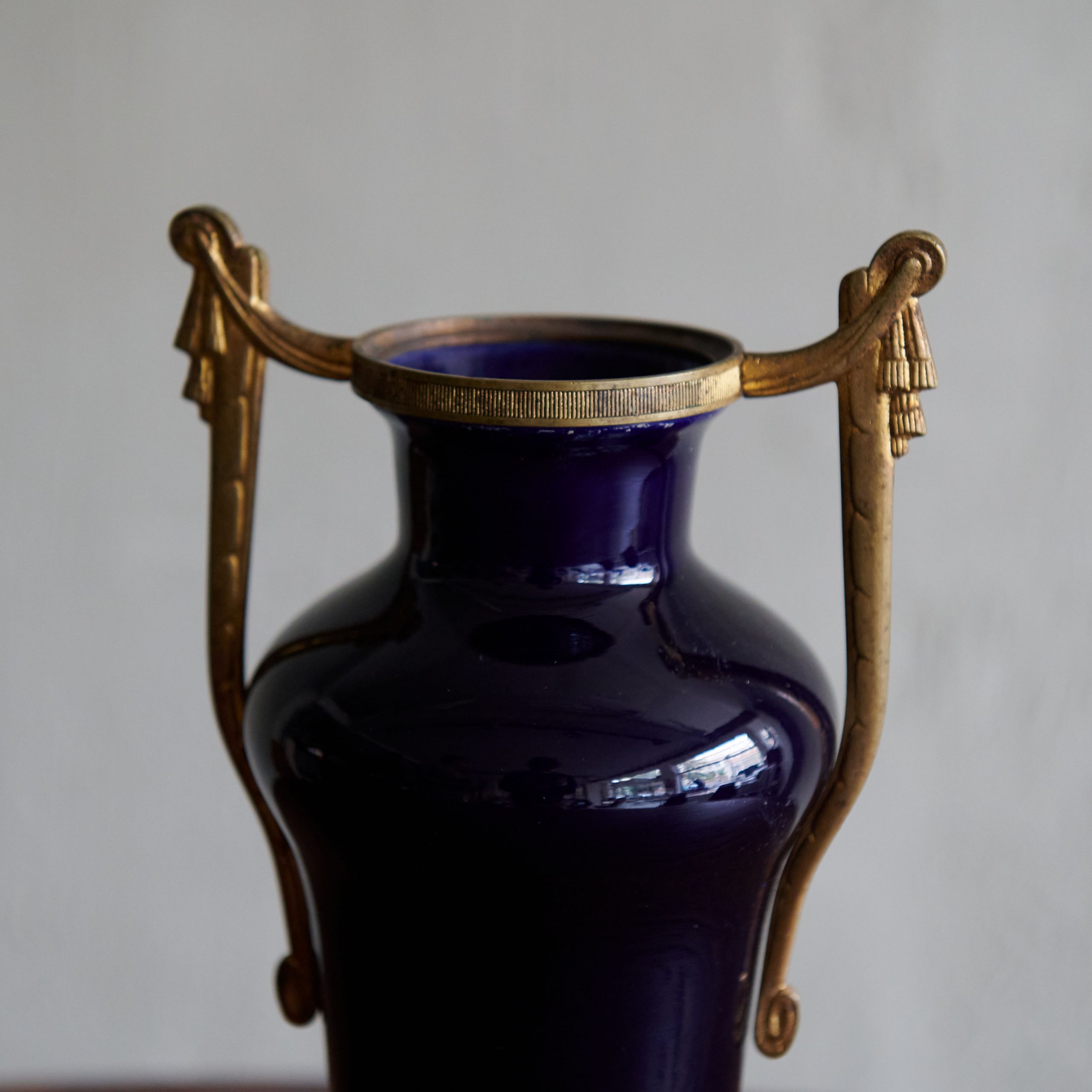Jarrón de cerámica azul estilo Paul Milet década francesa de 1900. Una pieza única de Art Nouveau de principios del siglo XX en cerámica esmaltada azul oscuro con remates en bronce. Totalmente del estilo del artista francés Paul Jean Milet, es una joya decorativa.