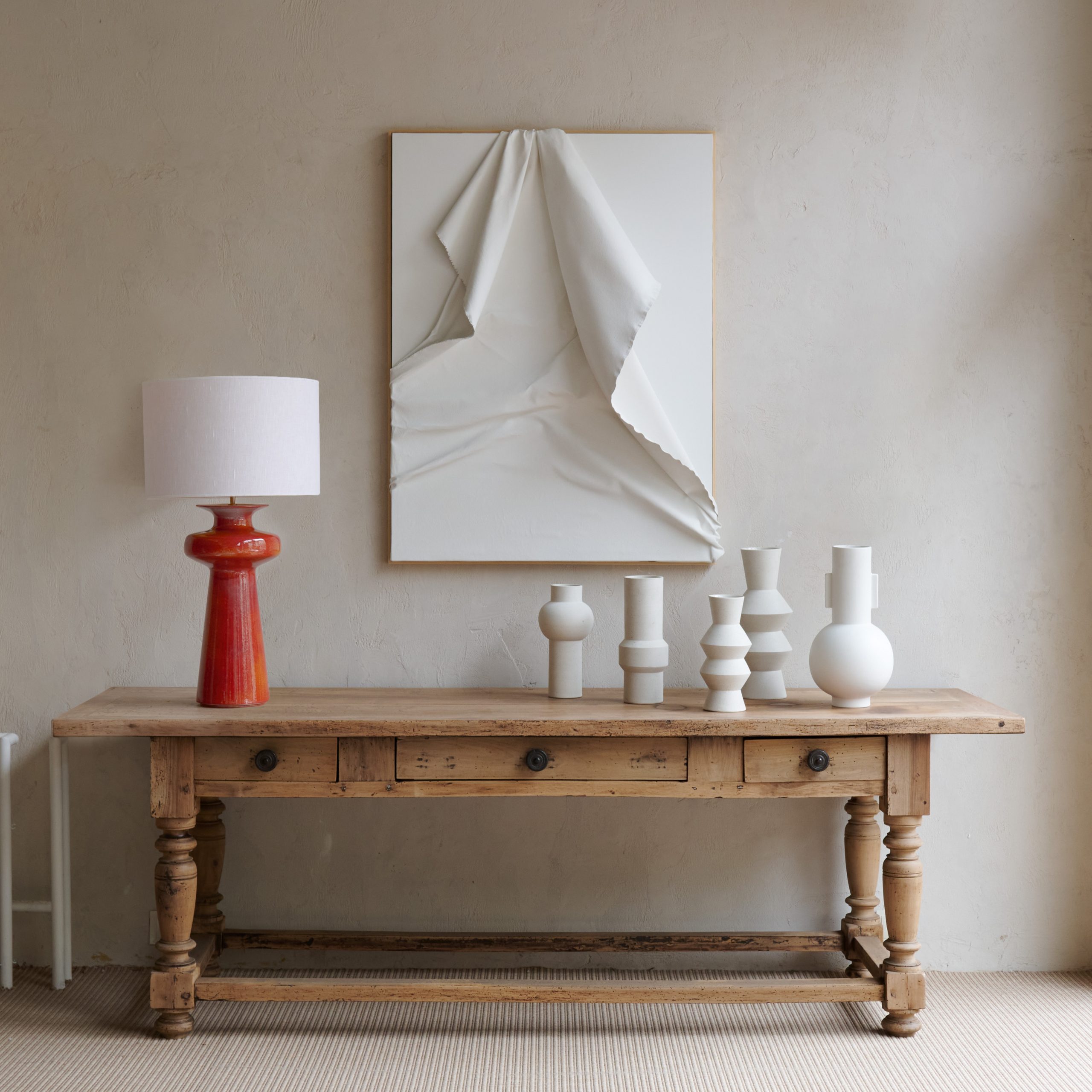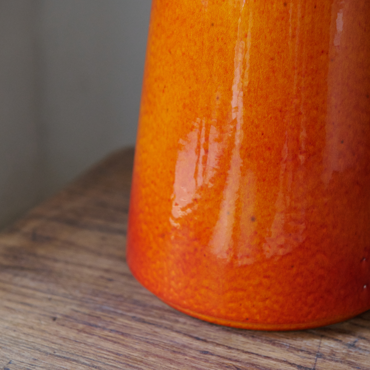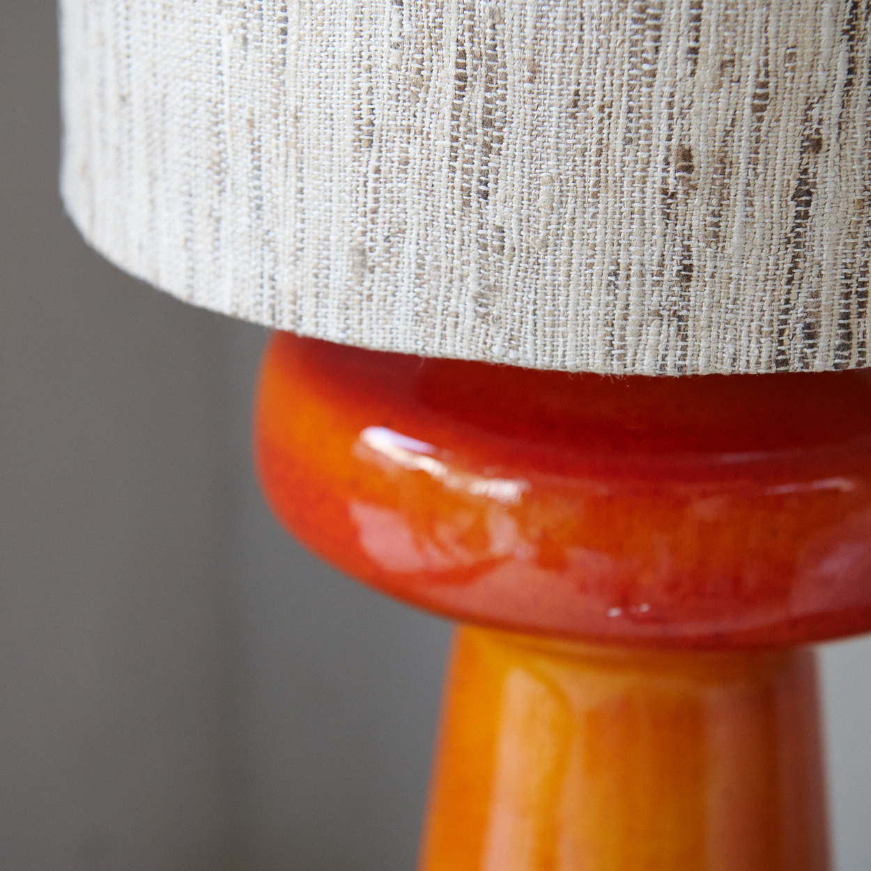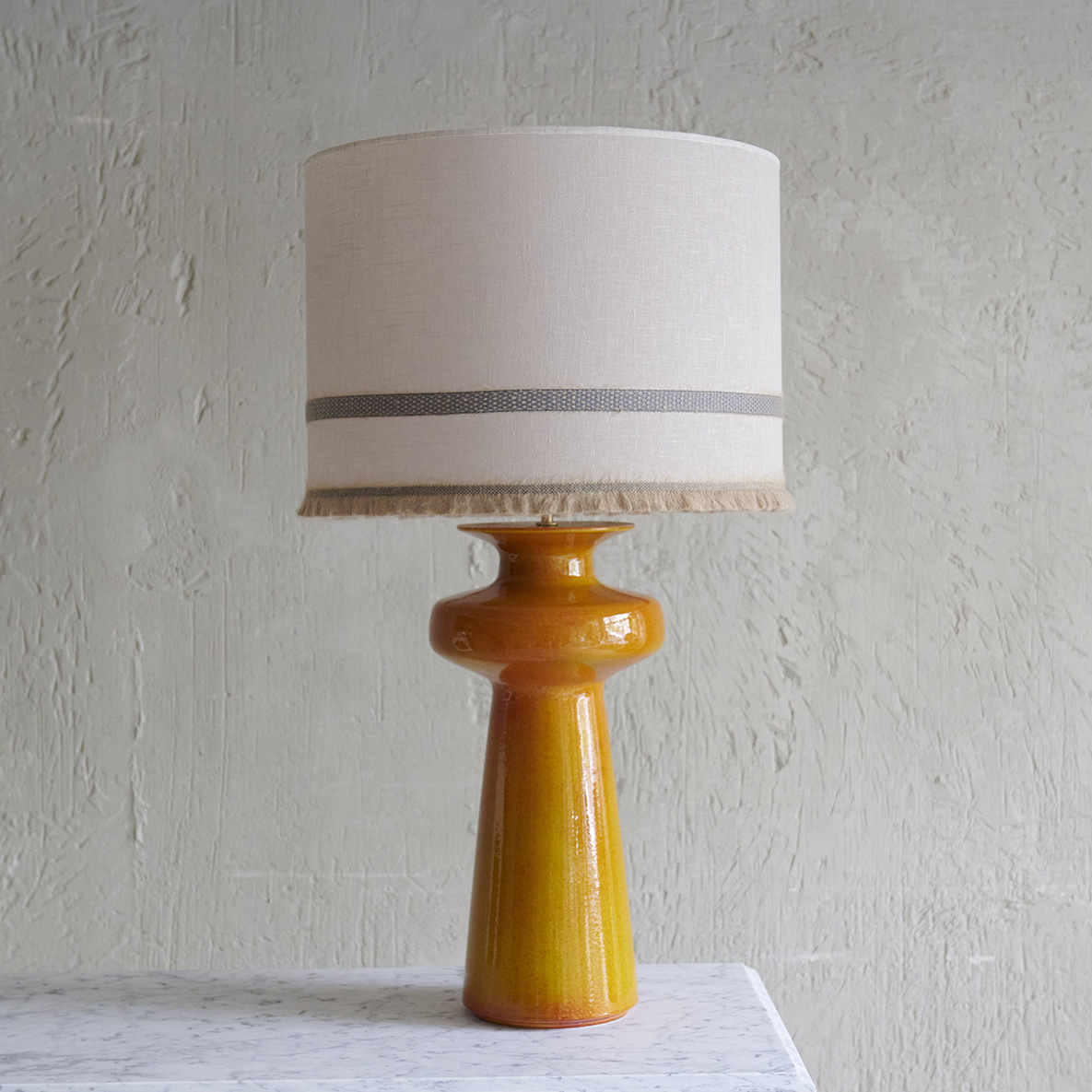 Lámpara de mesa de alfarería naranja. Una pieza vibrante y llamativa que agrega un toque de calidez y estilo a cualquier espacio. Fabricada en loza de alta calidad, esta lámpara combina funcionalidad y estética en un diseño único que destaca por su color audaz y su acabado impecable. No incluye pantalla.
