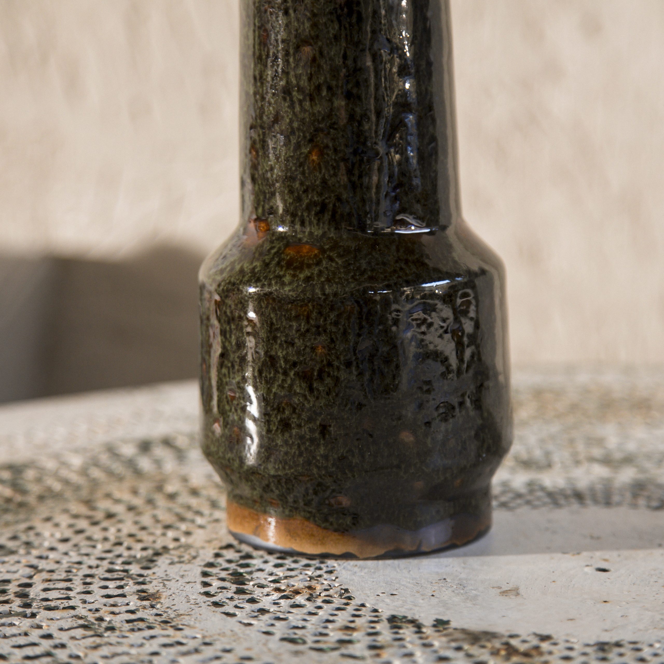 Lámpara de mesa de cerámica verde estilo retro. No incluye pantalla.