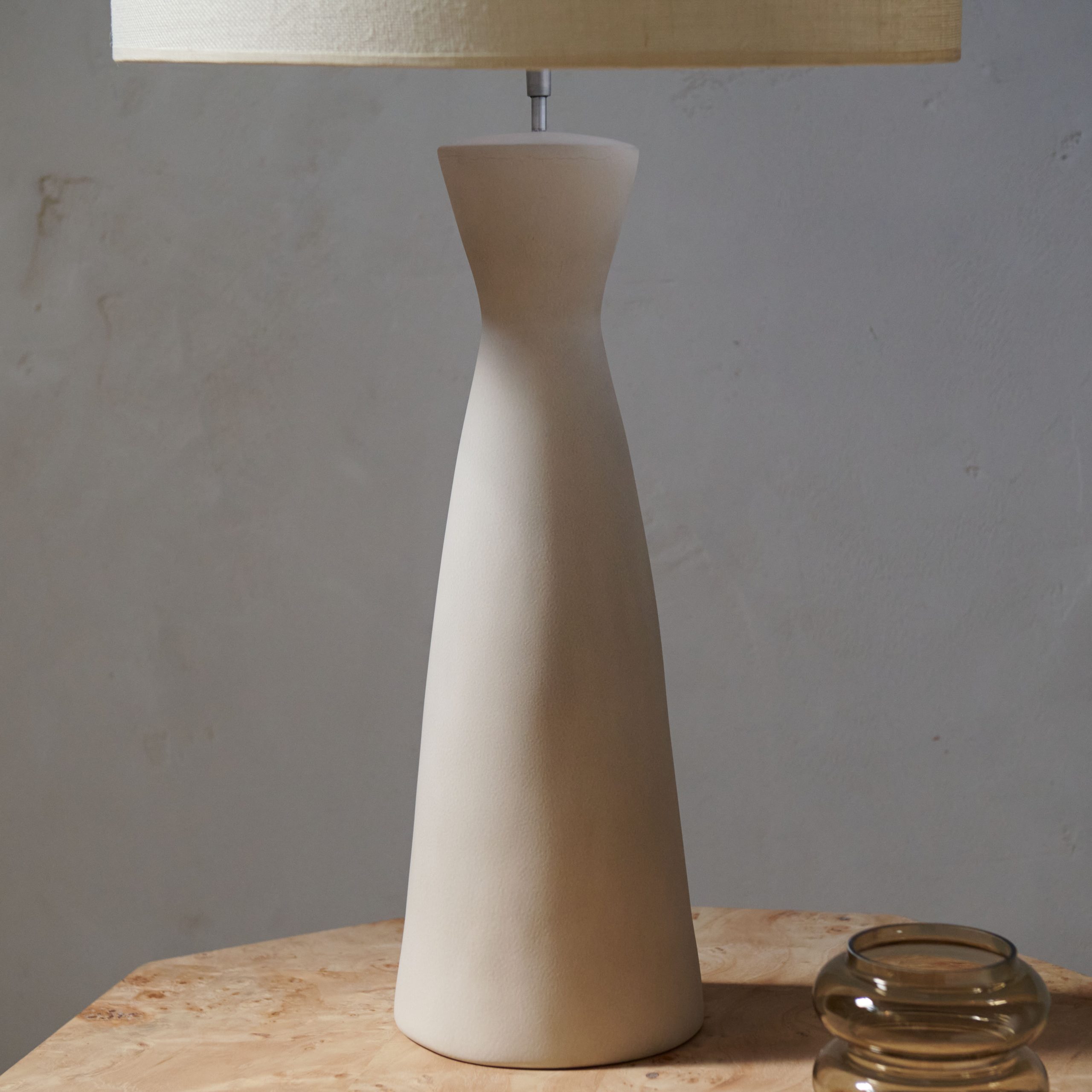Lámpara de cerámica blanca. Fabricada en cerámica de alta calidad, con un acabado liso y mate que resalta su elegancia. El color blanco aporta una sensación de pureza y modernidad, siendo fácil de combinar con diferentes estilos de decoración. No incluye pantalla.