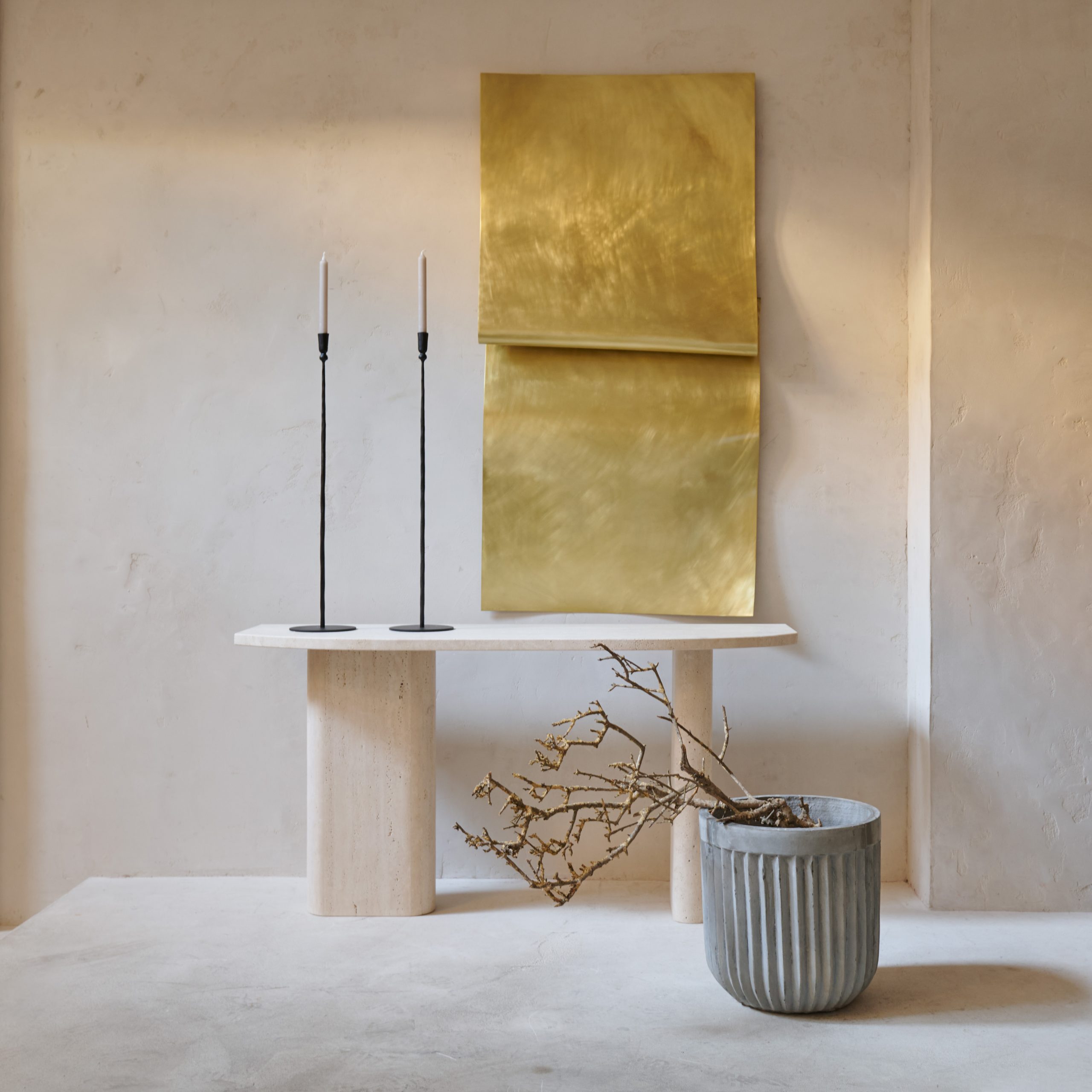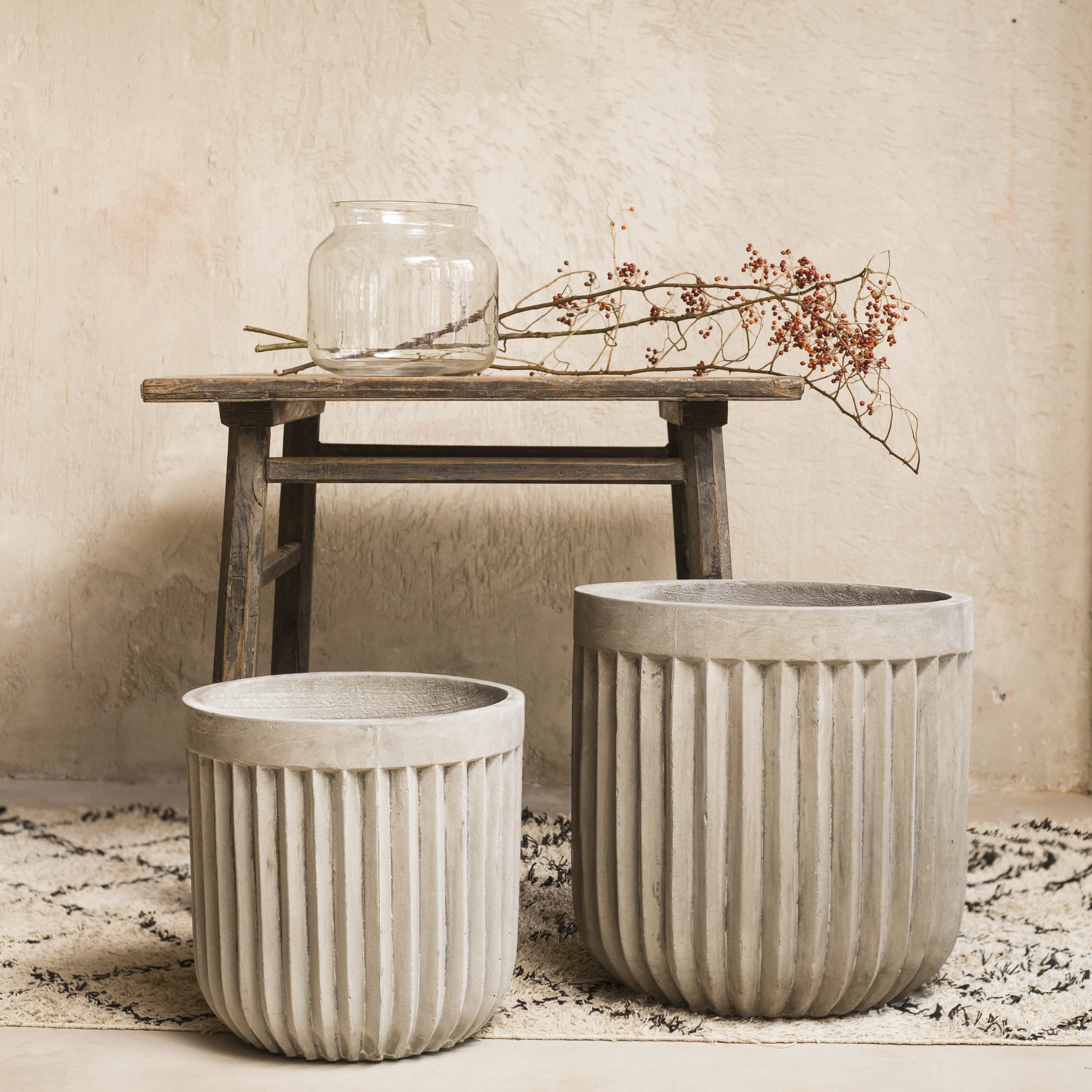 Maceta de cemento acanalado gris claro S.