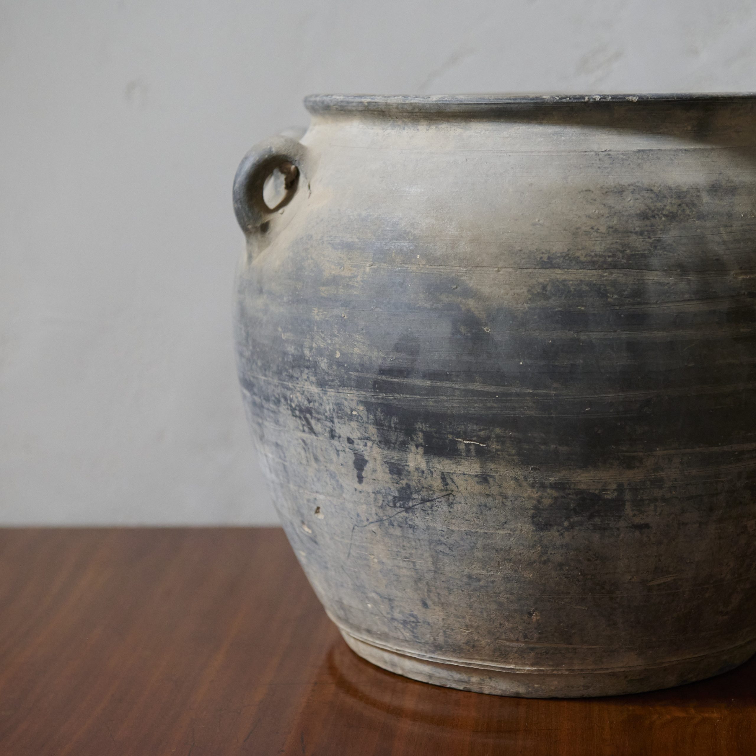 Macetero de terracota antigua origen Shaanxi. Moldeado en torno al año 1900 presenta proporciones equilibradas y una superficie marcada por las irregularidades de la cocción de la pieza. De color gris ahumado, casi negro, es una imponente pieza que, al ser artesanal, presenta diferentes acabados.