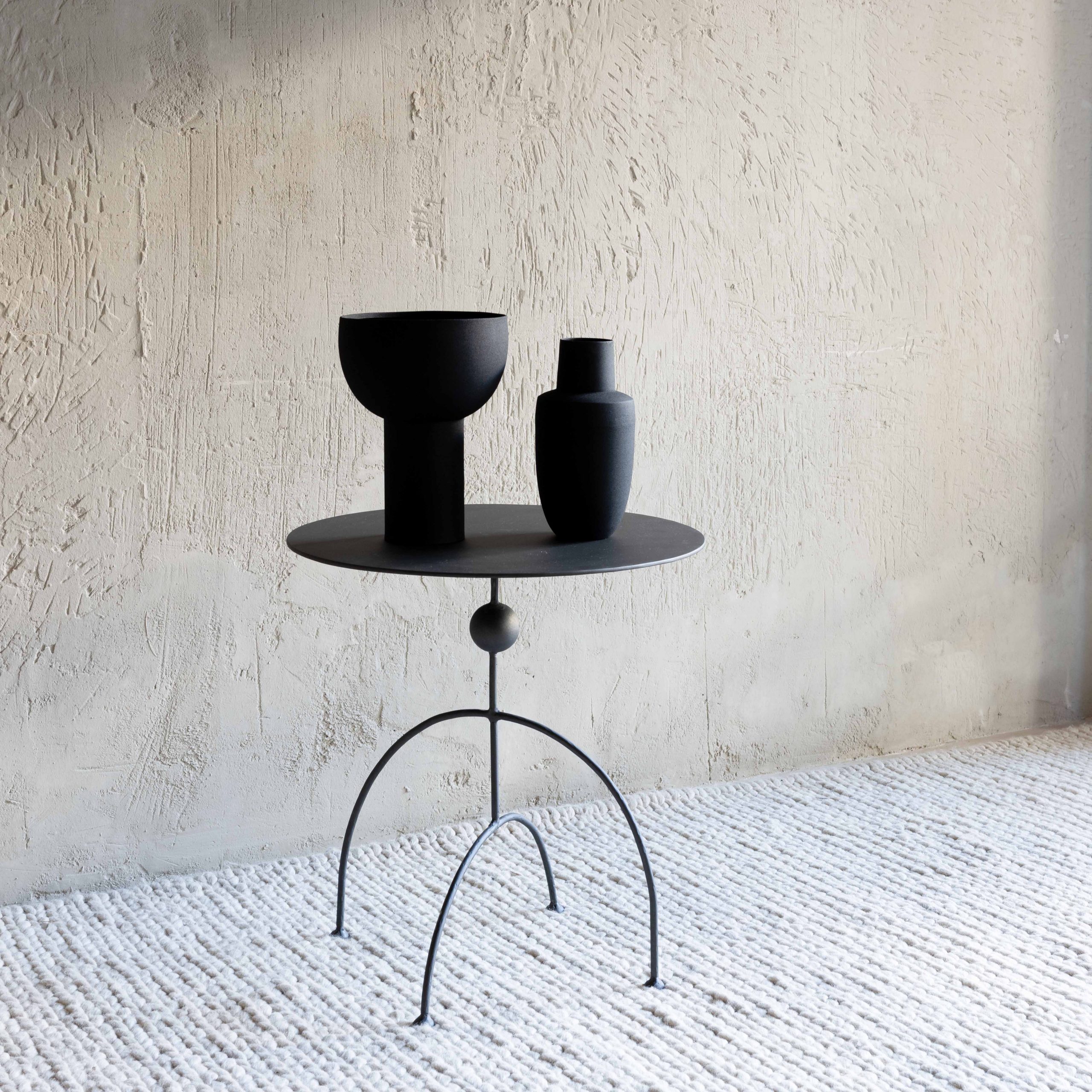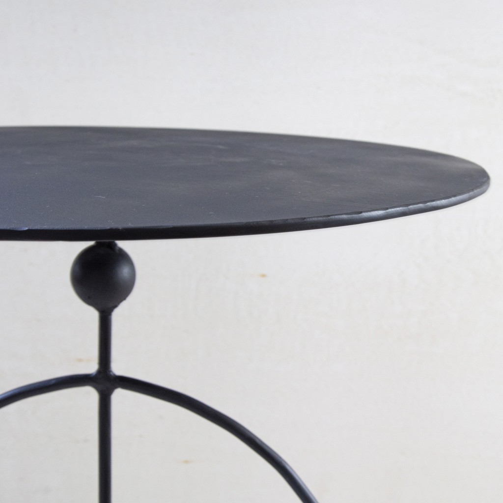 La mesa auxiliar Altamira destaca por su estructura de originales patas de forja de hierro, con un remate esférico que añade un toque de estilo único. Su tapa pavonada con antioxidante en negro mate le confiere un aspecto sofisticado y duradero. Es el complemento perfecto para cualquier espacio con un toque distintivo. Al ser un diseño propio, se puede encargar a medida por el cliente. Consultar vía email a shoponline@tristandomecq.com, llamando al 915763742 o a través de whatsapp.