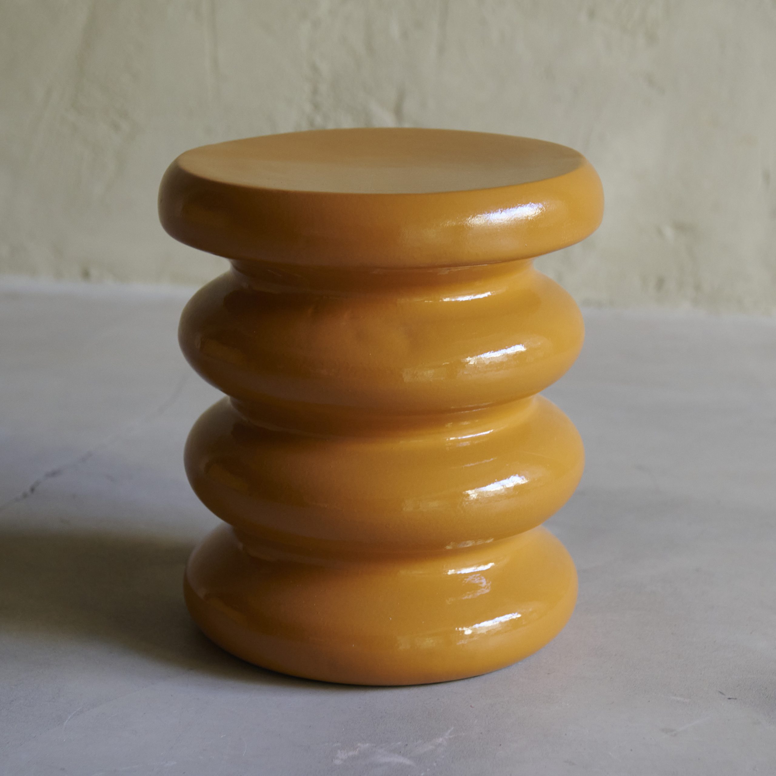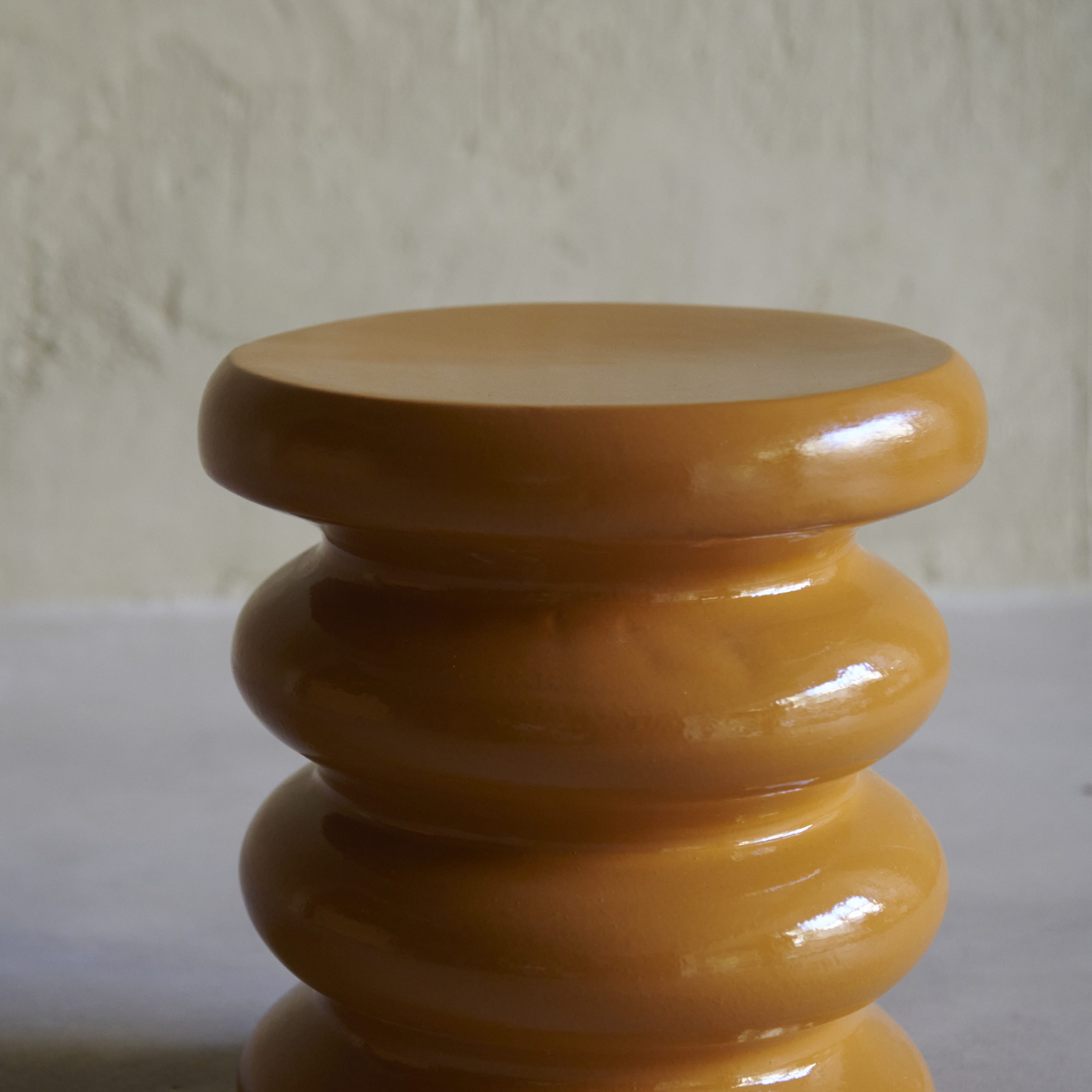 Mesita auxiliar de terracota en color caramelo. Coqueta pieza que encaja en cualquier espacio decorativo.