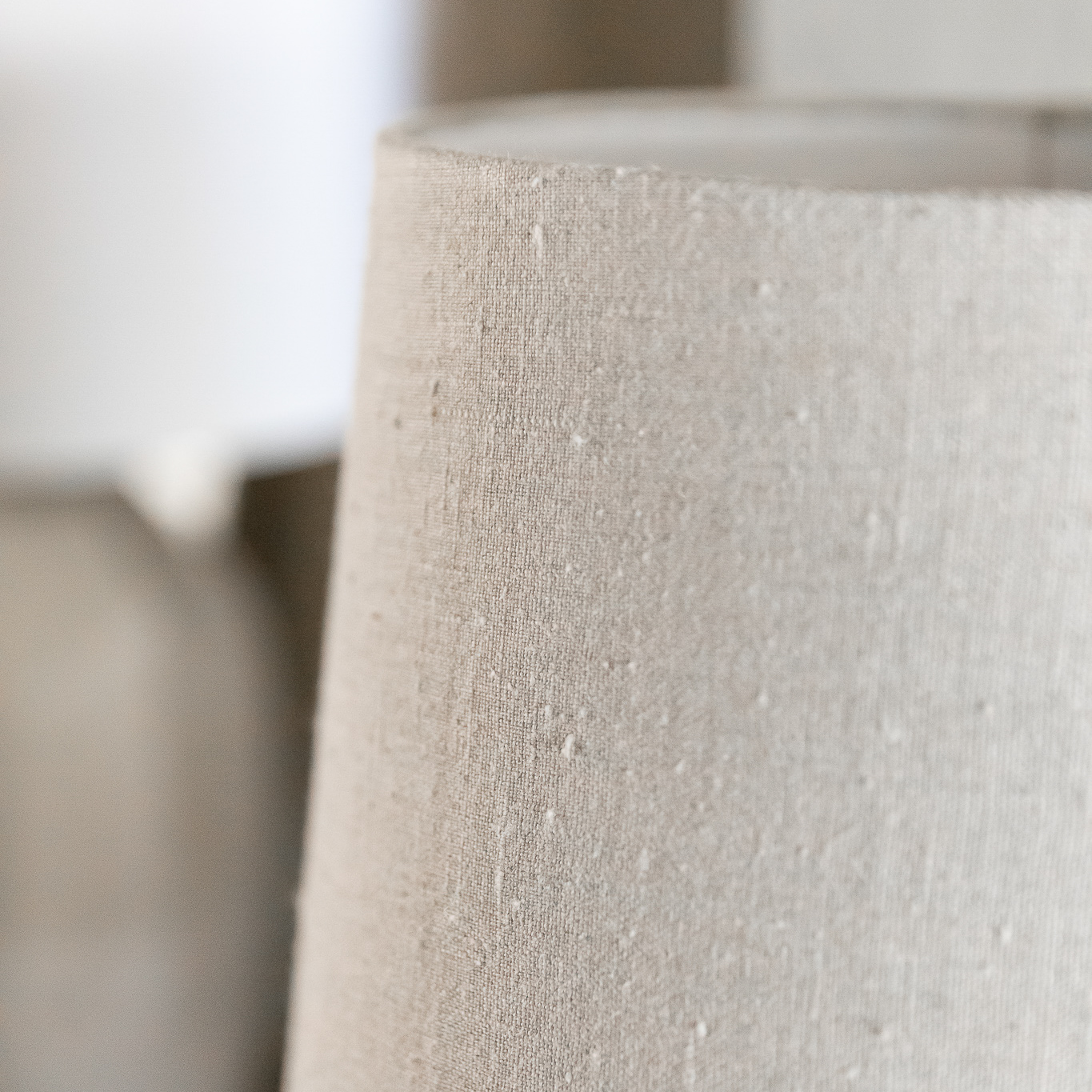 Pantalla de lino beige con interior blanco diseñada con forma de cono.