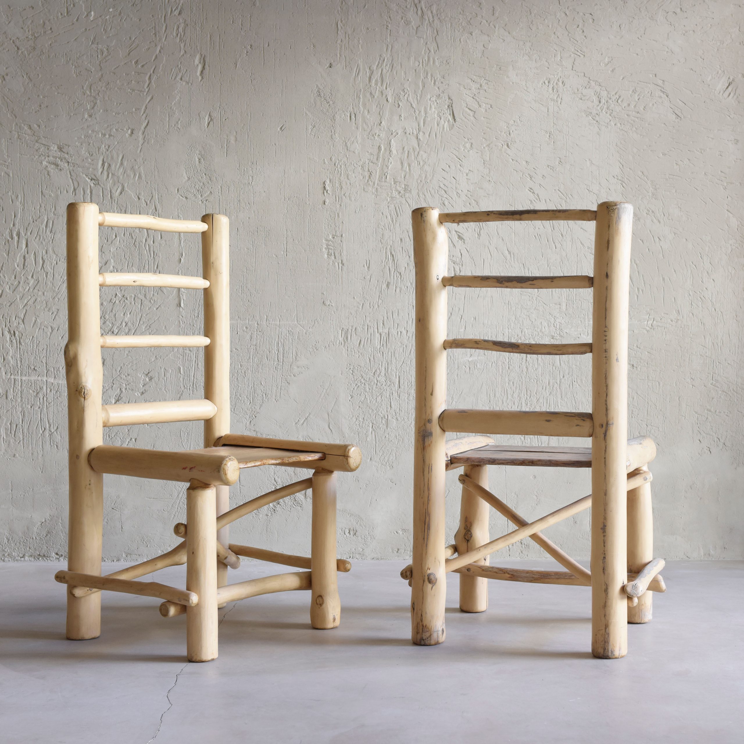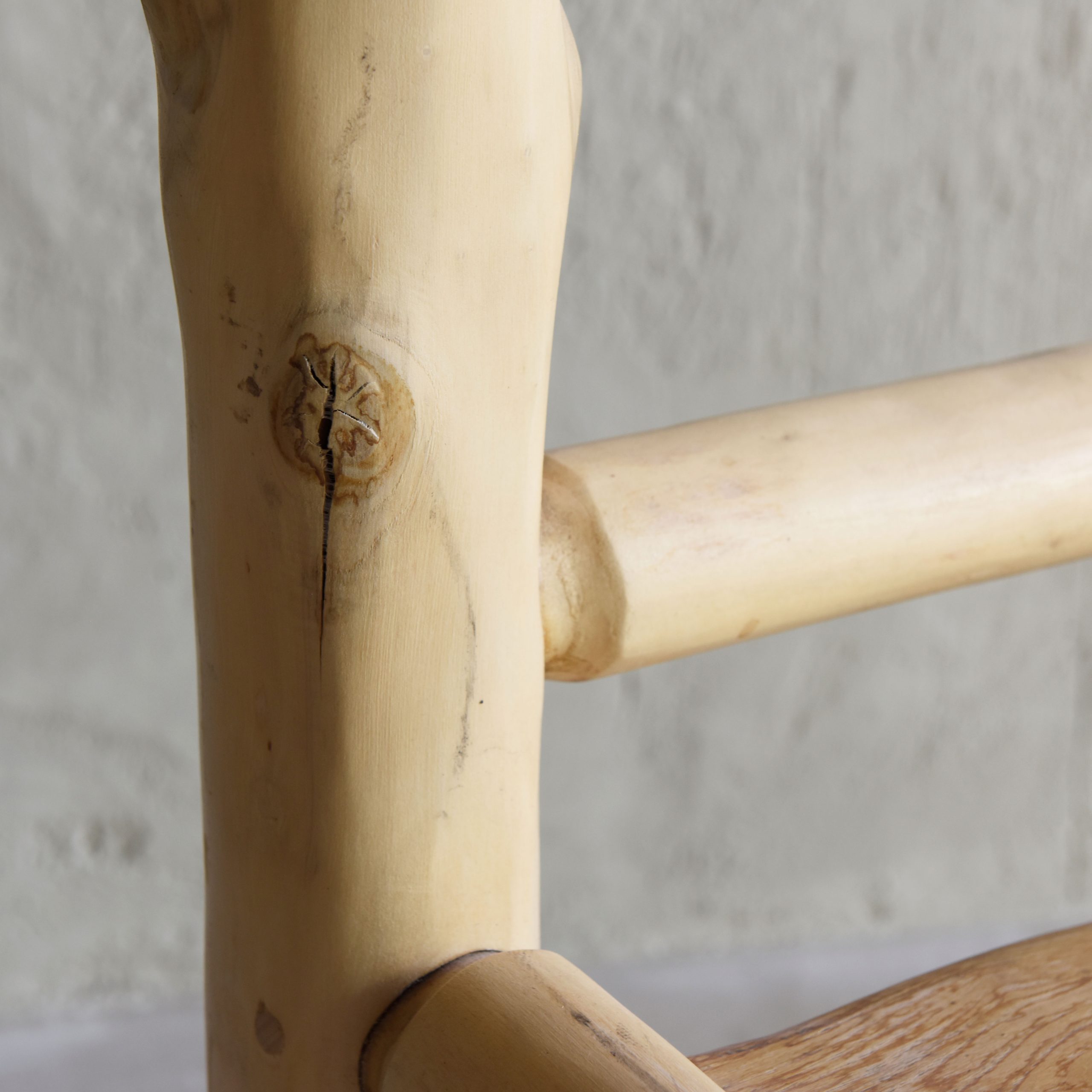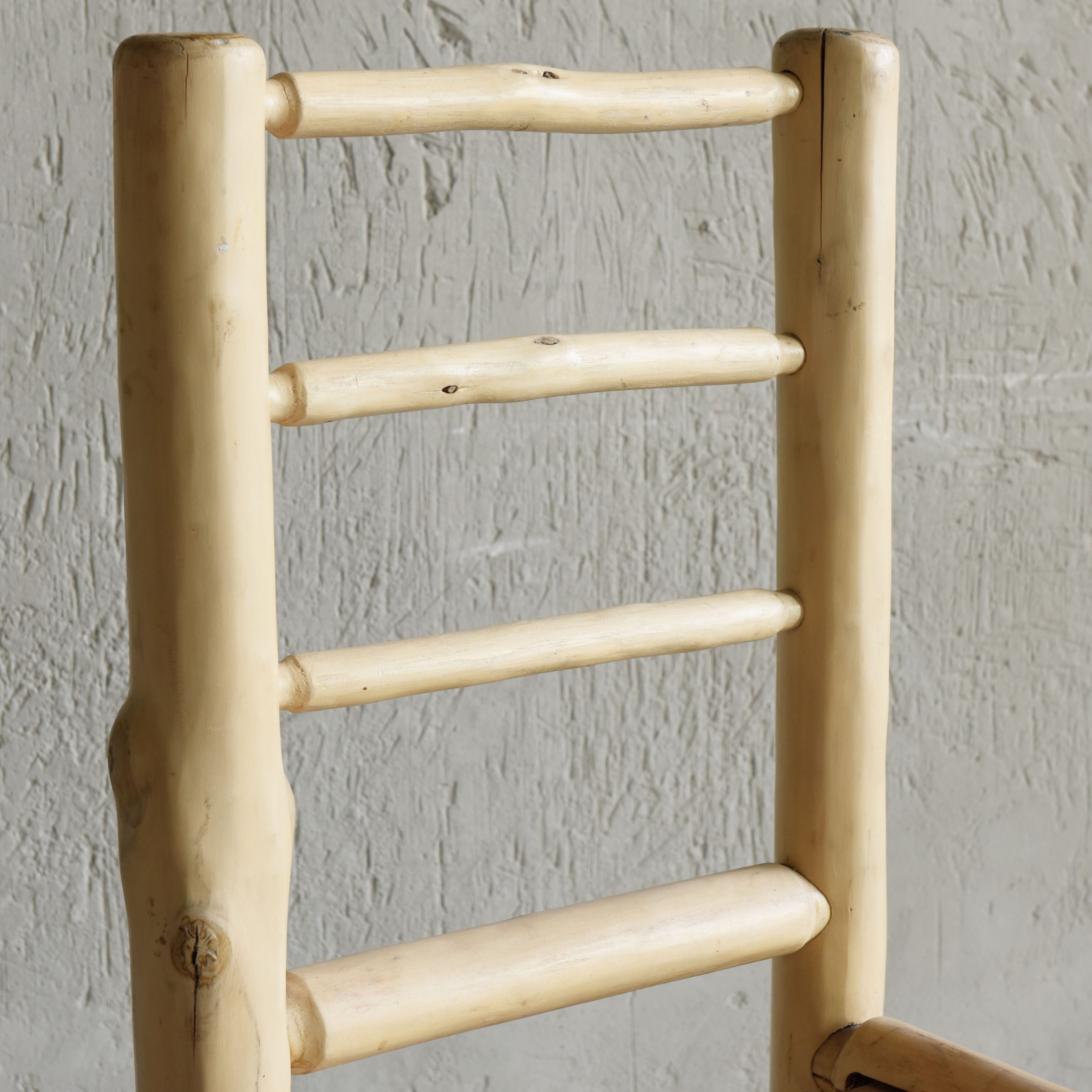 La pareja de sillas vintage de madera desprende un encanto exótico y retro. Con su estructura de madera que evoca al bambú natural y diseño, desprenden un estilo bohemio y relajado. Sus detalles artesanales añaden un toque de elegancia vintage a cualquier espacio, creando un ambiente acogedor y nostálgico.