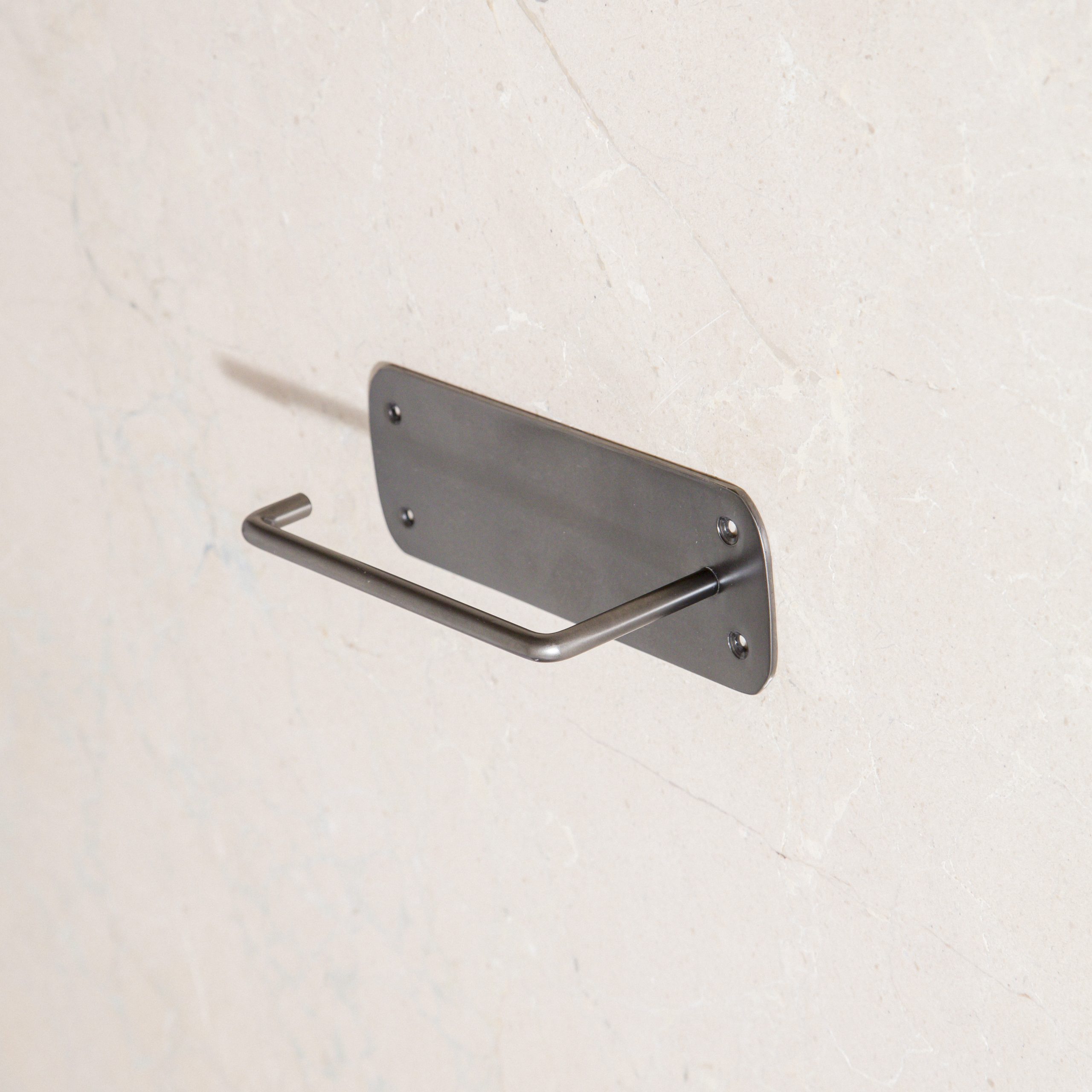 Portarrollos de acero en color negro envejecido. Además de ser funcional, el portarrollos de acero inoxidable y acabado en negro, es una pieza que añade un toque de estilo y calidez a cualquier cuarto de baño y combina bien con variedad de estilos de decoración.