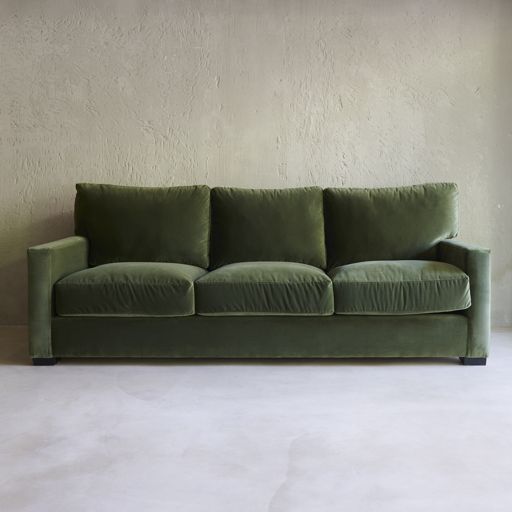 Sofá Palermo elaborado con tela terciopelo en color verde botella es una pieza de julo y elegancia. Su tela suave al tacto enriquece el ambiente con un toque de calidez, las líneas refinadas y los cojines compuestos de ergolatex y plumón ofrecen comodidad y estilo. Al ser un diseño propio, se puede encargar en diferentes medidas y colores, incluso con una tela propia del cliente. Consultar vía email a shoponline@tristandomecq.com, llamando al 915763742 o a través de whatsapp.