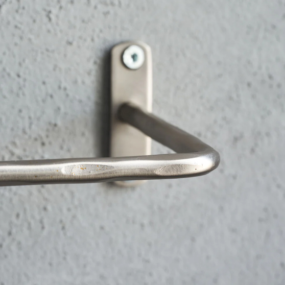 Toallero plateado cepillado. De acero inoxidable, con su color plateado con acabado cepillado añade estilo informal y moderno al cuarto de baño. Su superficie ligeramente irregular, aporta un toque especial.