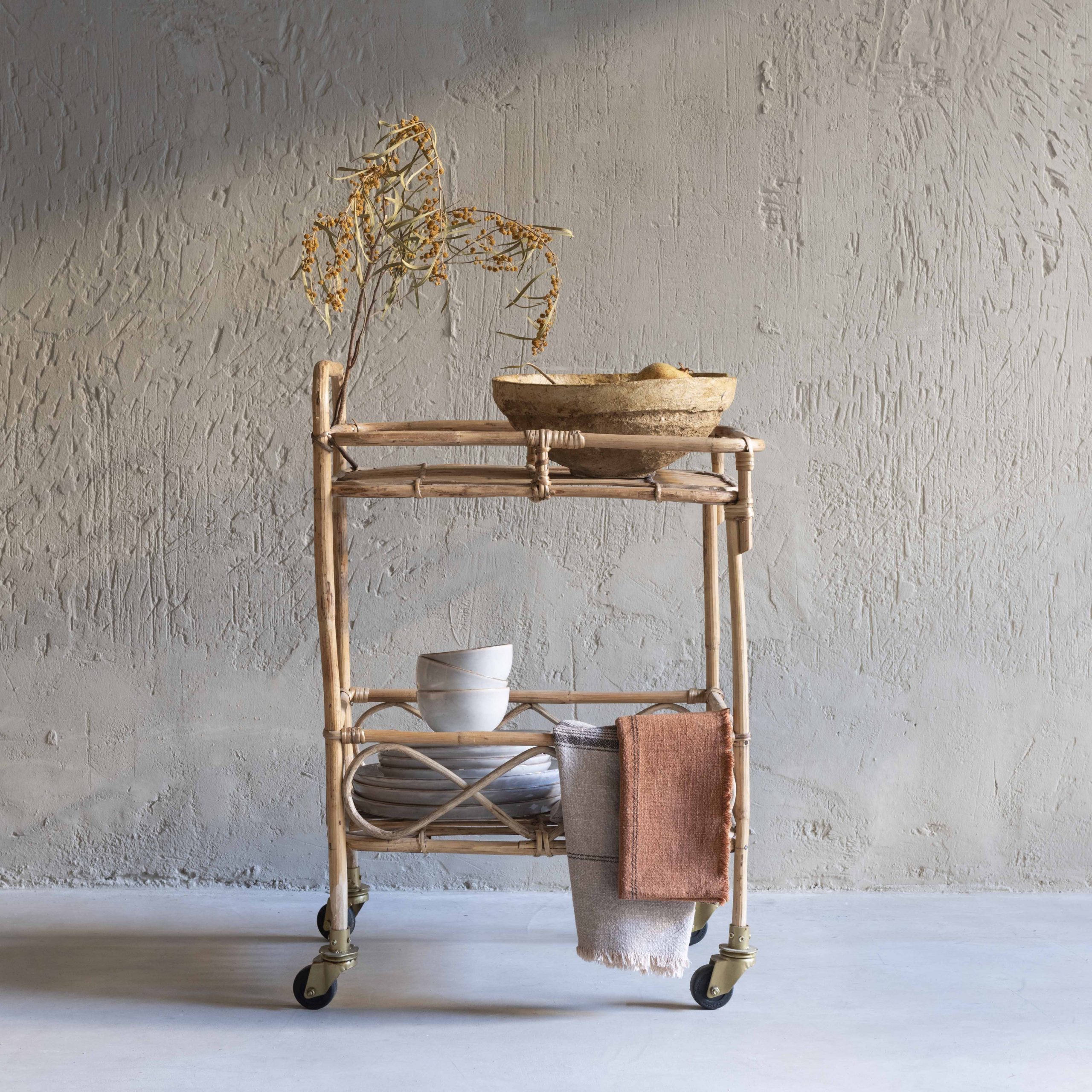 Trapo de cocina color naranja en algodón lavado a la piedra. Con rayas y flecos. Lavar a máquina 60ºC.