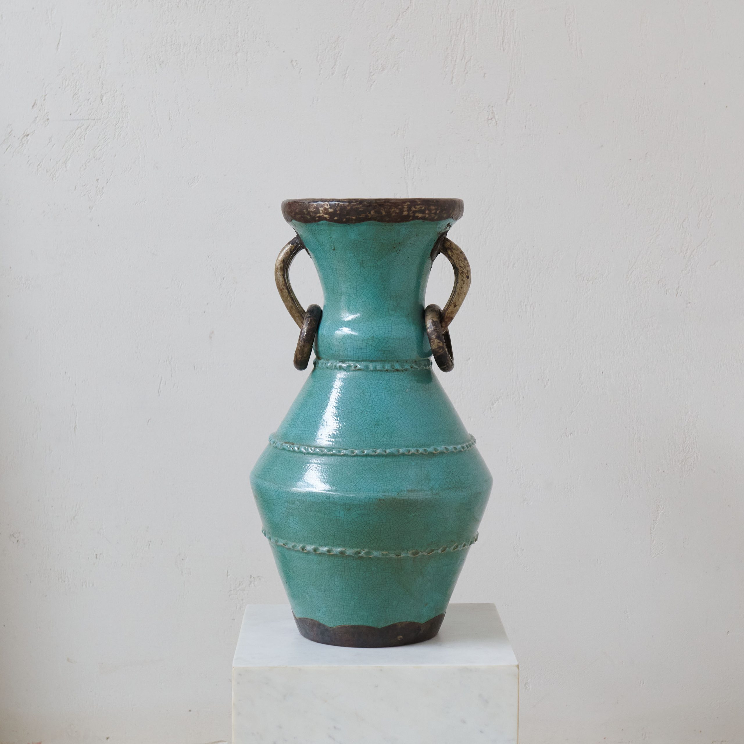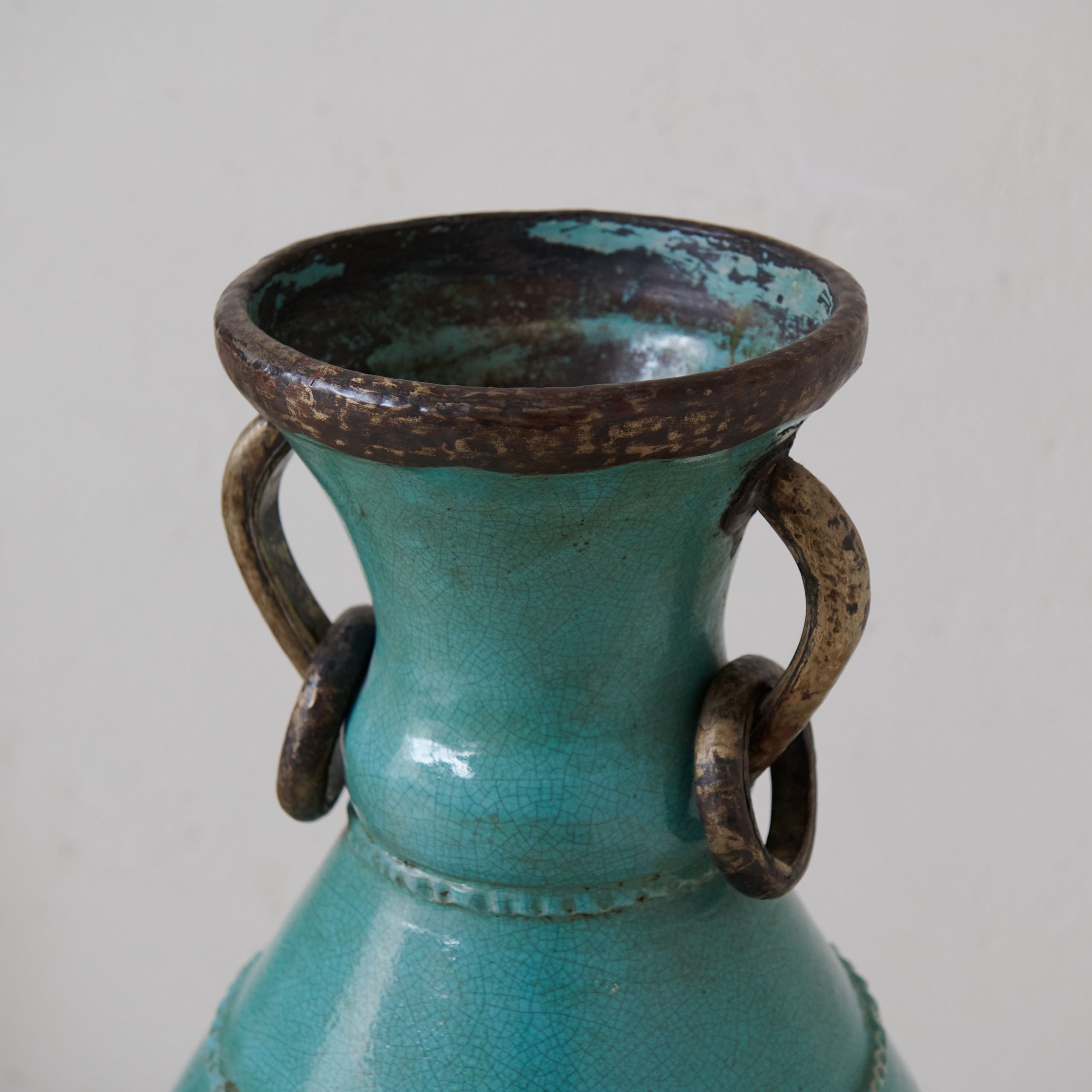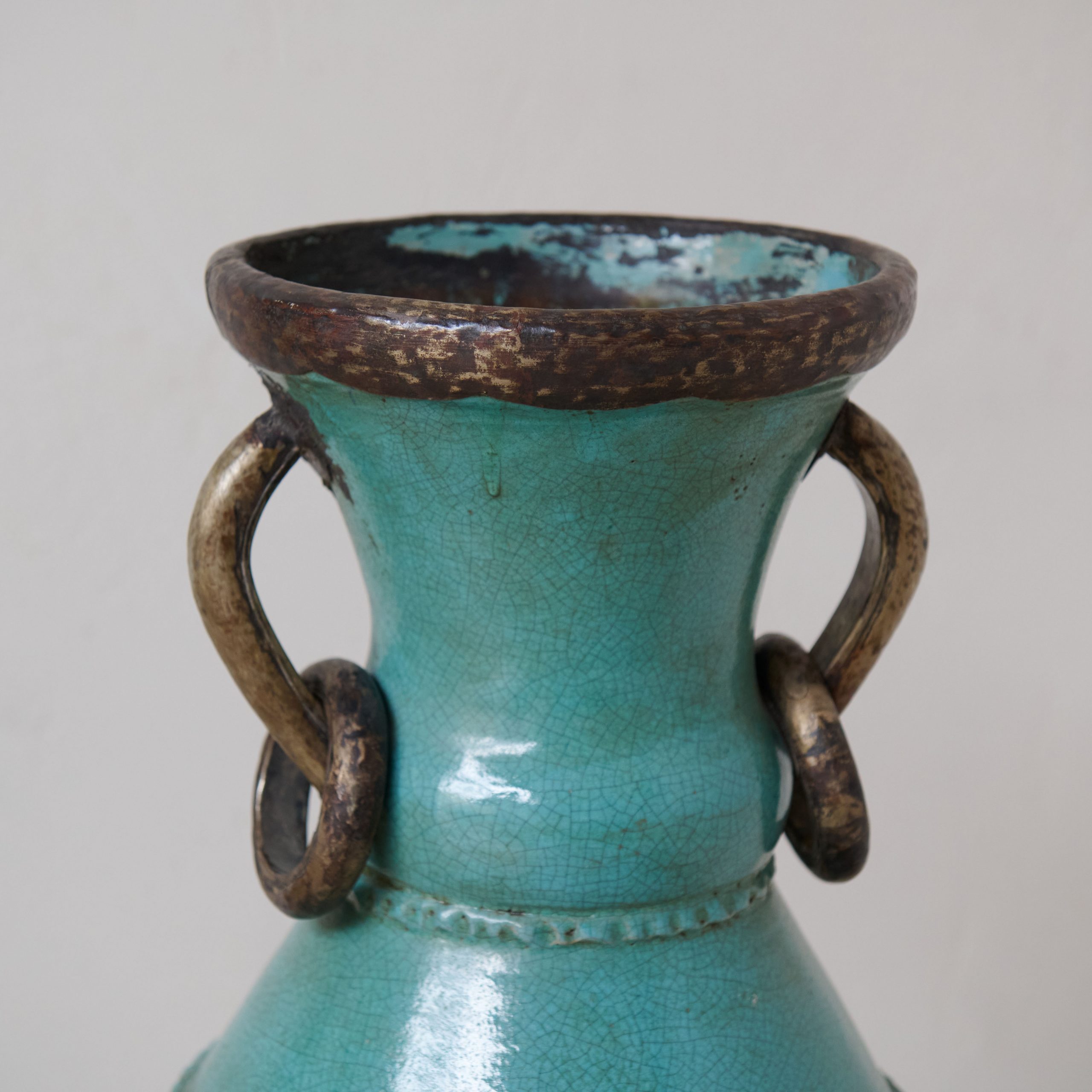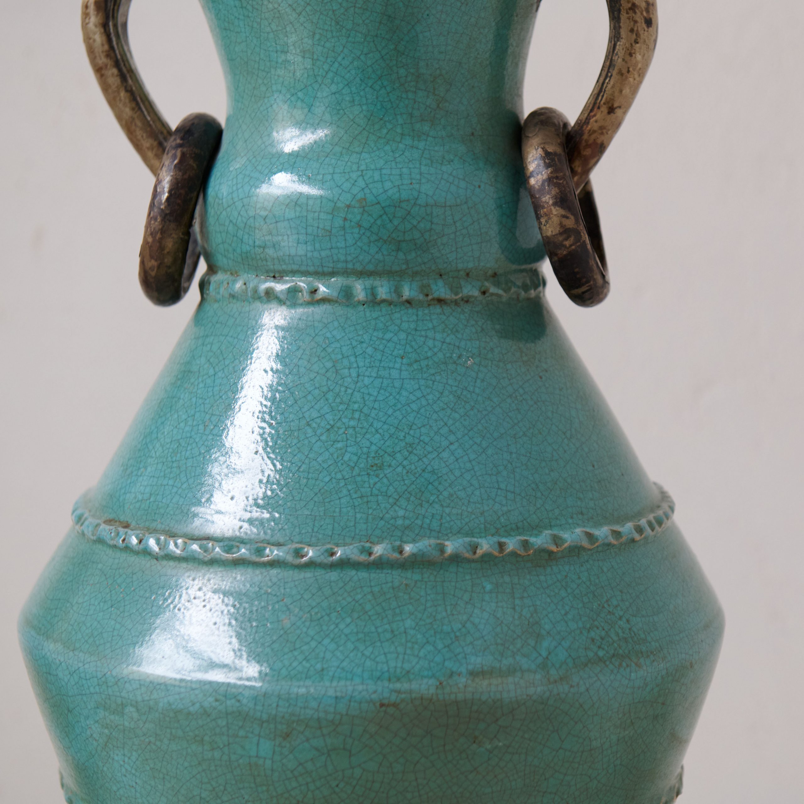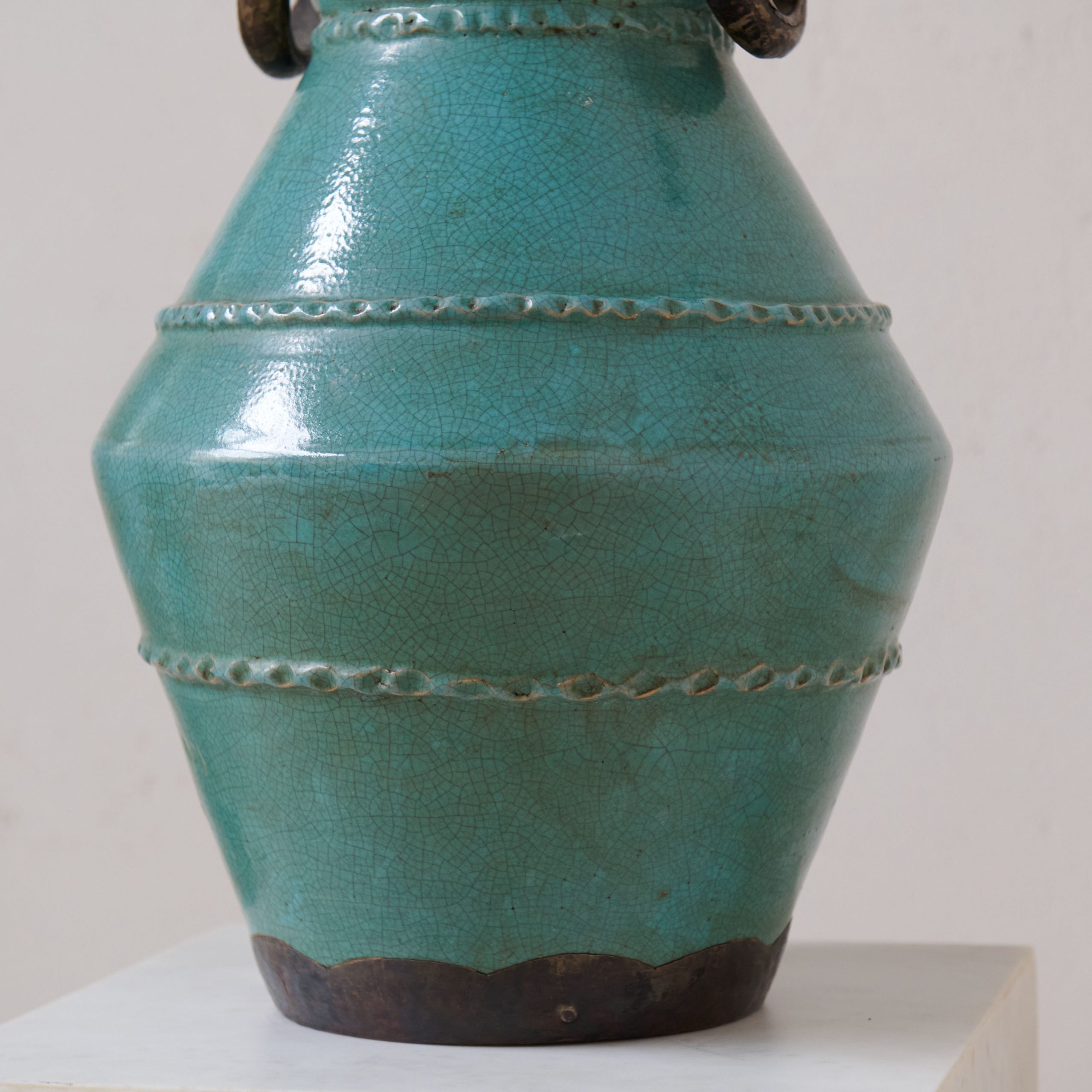 Vasija de cerámica procedente de Tamegroute verde turquesa. Una pieza única y original procedente de los talleres ancestrales de Tamegroute, en el sur de Marruecos, donde generaciones de artesanos moldean una cerámica única en su género. Esta vasija verde turquesa es resultado del patrimonio artesanal y cultural que hace que estas cerámicas, en las que destaca su esmalte de increíbles tonos verdes, sean famosas en todo el mundo. Una pieza decorativa muy especial y con historia.